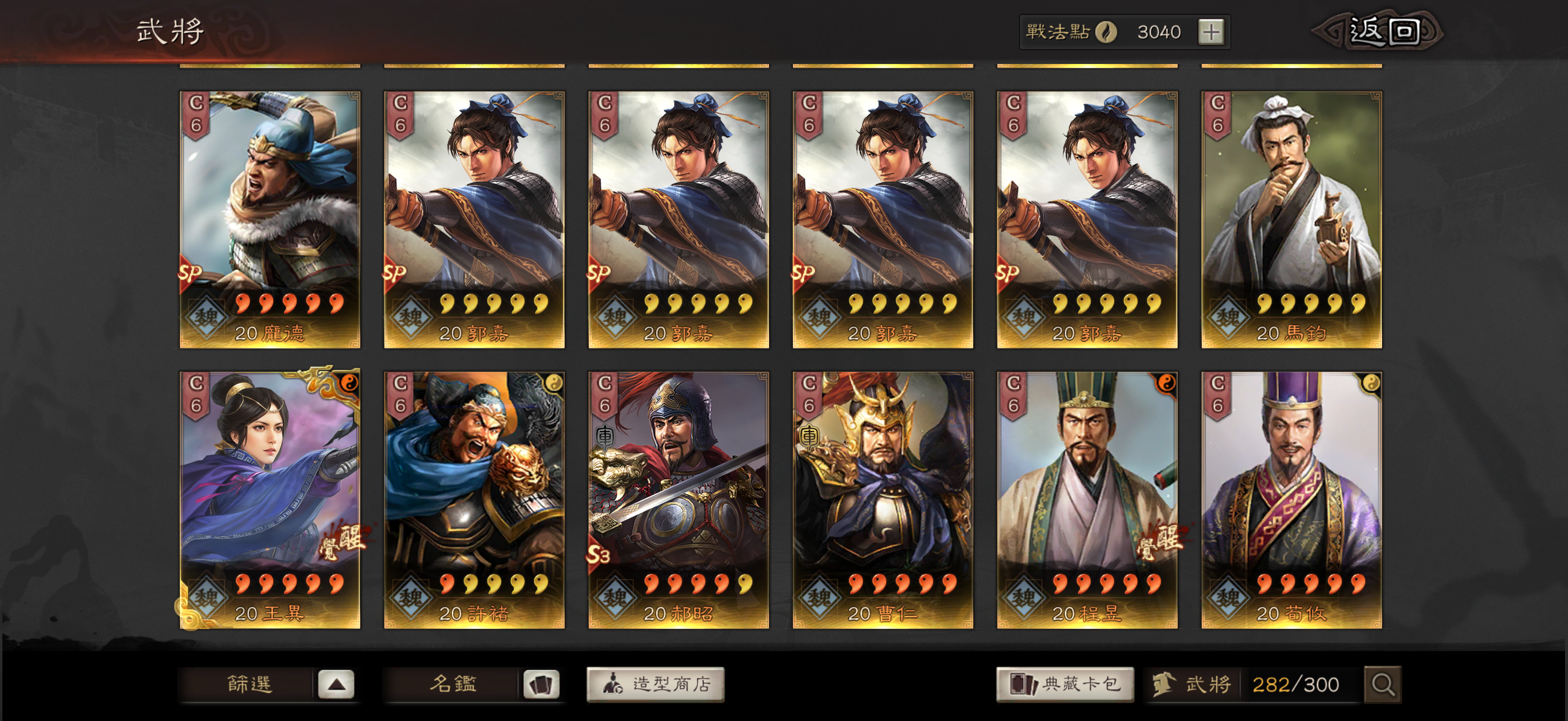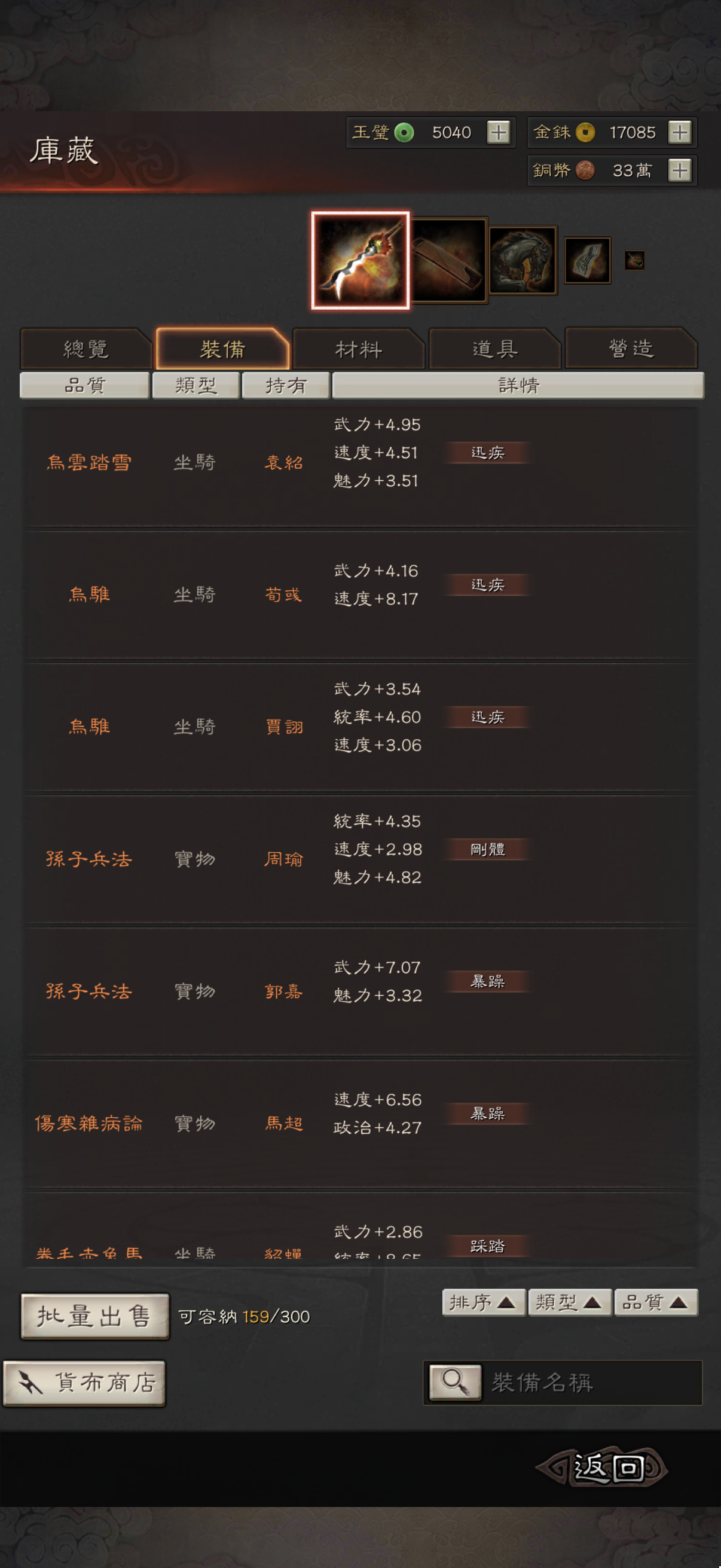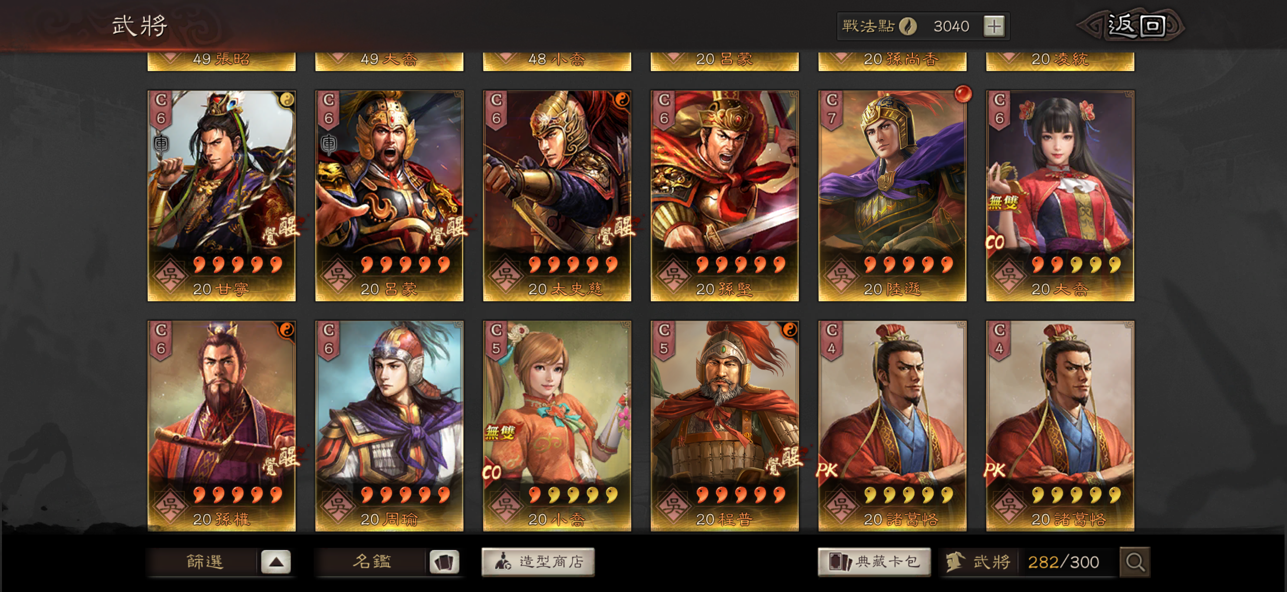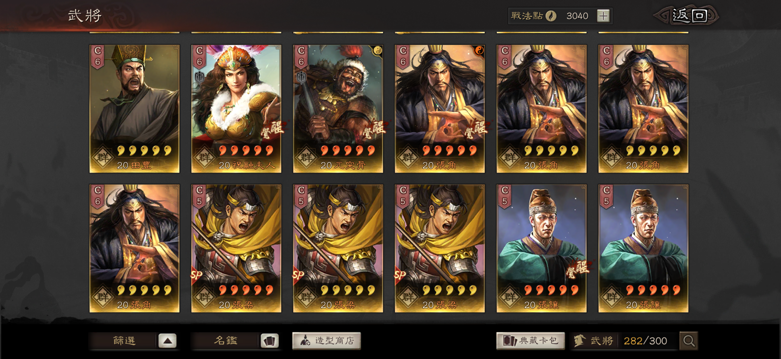 神威 熊烈 奸雄 沉勢 號令 2武聖 弓神 昭烈 天公 龍驤 虎恃 5靈動 3援助 奇算 2雍雅 3踩踏 2出奇 扶危 2暴躁 2長健 剛體 回元 機謀 (還有很多沒列出來的 請自行查看