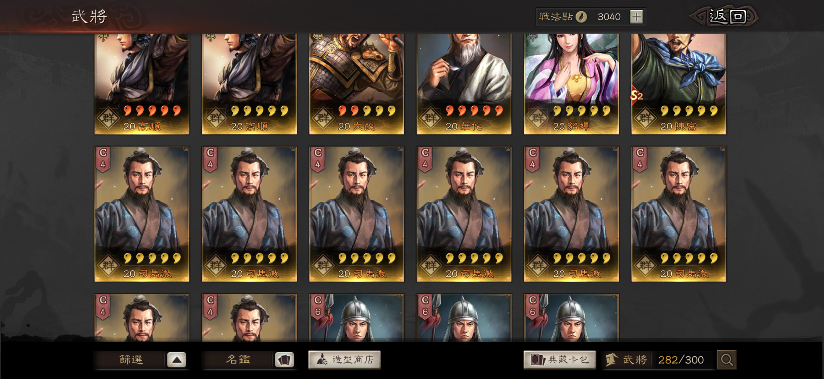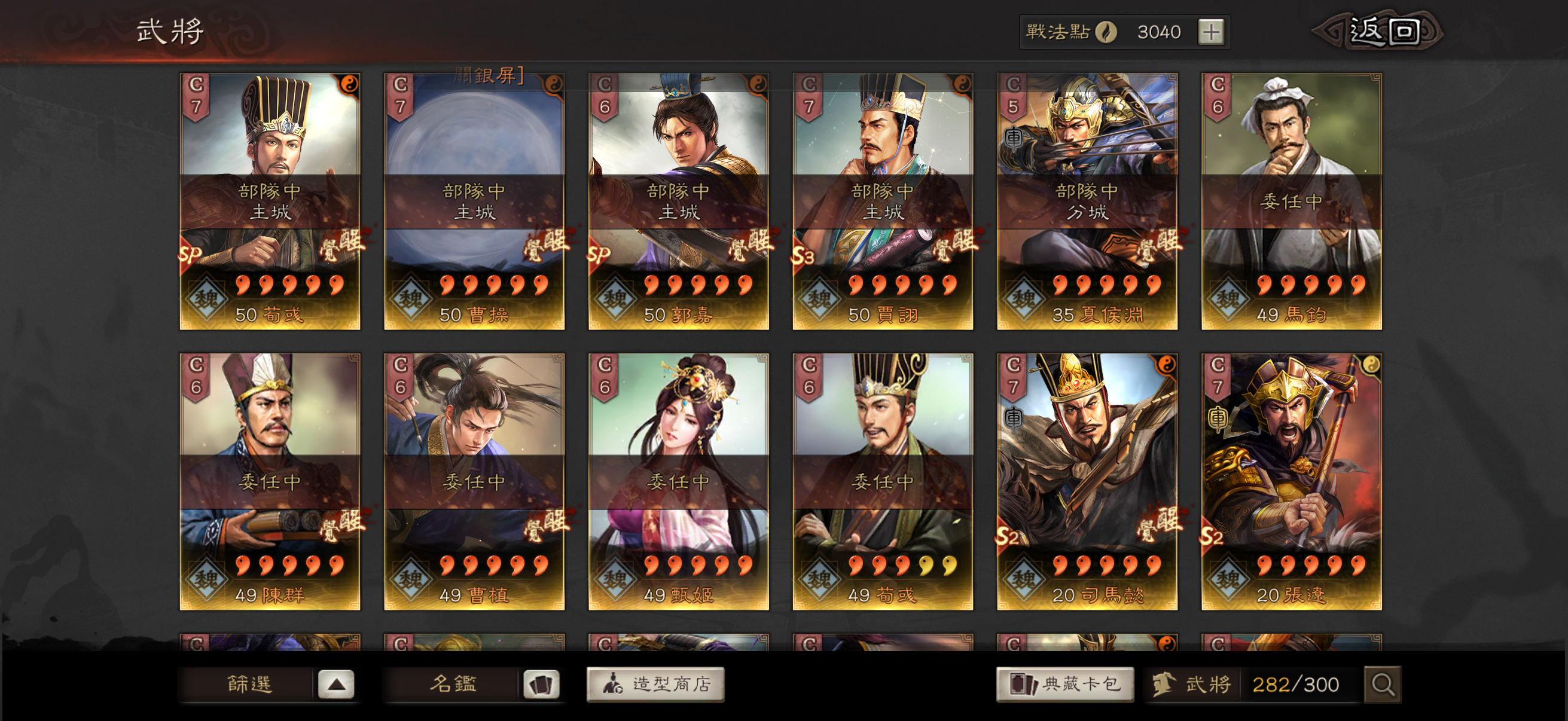 肥料還很多 能上場的動態都開了 滿紅王異 孫權 3紅馬岱 中低紅qq