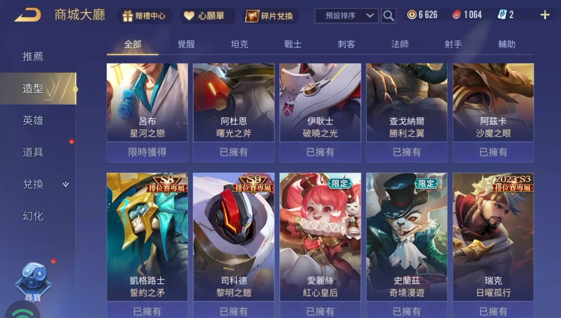 傳說對決台服帳 43英雄50造型 閃電俠 女超人 呂布 有90奧義 無綁定帳 garena登入 安卓蘋果都可以 回歸獎勵
