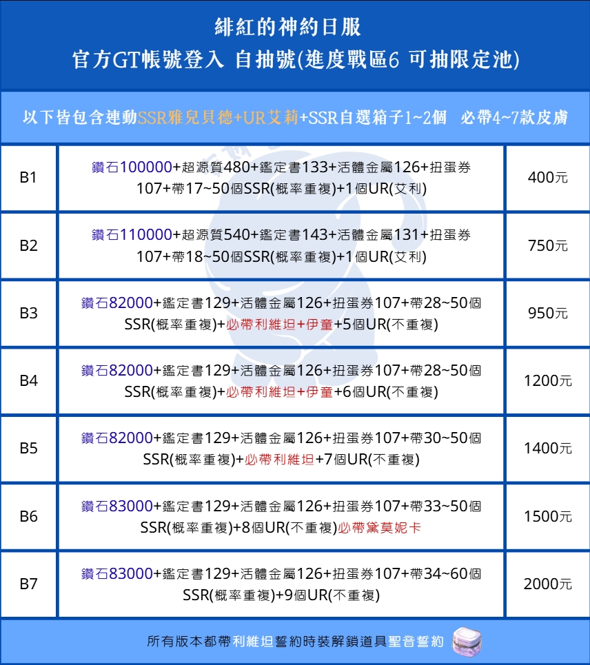 3.下單前請再三確認遊戲名稱、伺服器、角色是否正確,下單後因帳號資料已給出,不接受任何理由退換貨