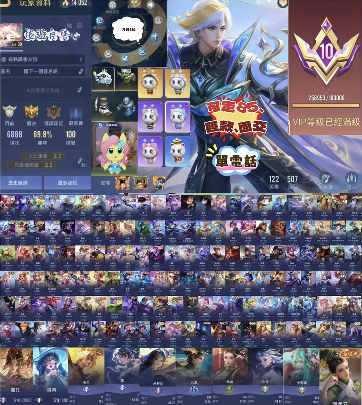 帳號 【Garena帳有綁定、鉑金、V10、122英、507造】 V10 歷史絕世高勝率 氣象、魔女、雙次元、多連動多抽獎、新年造型、綁定電話