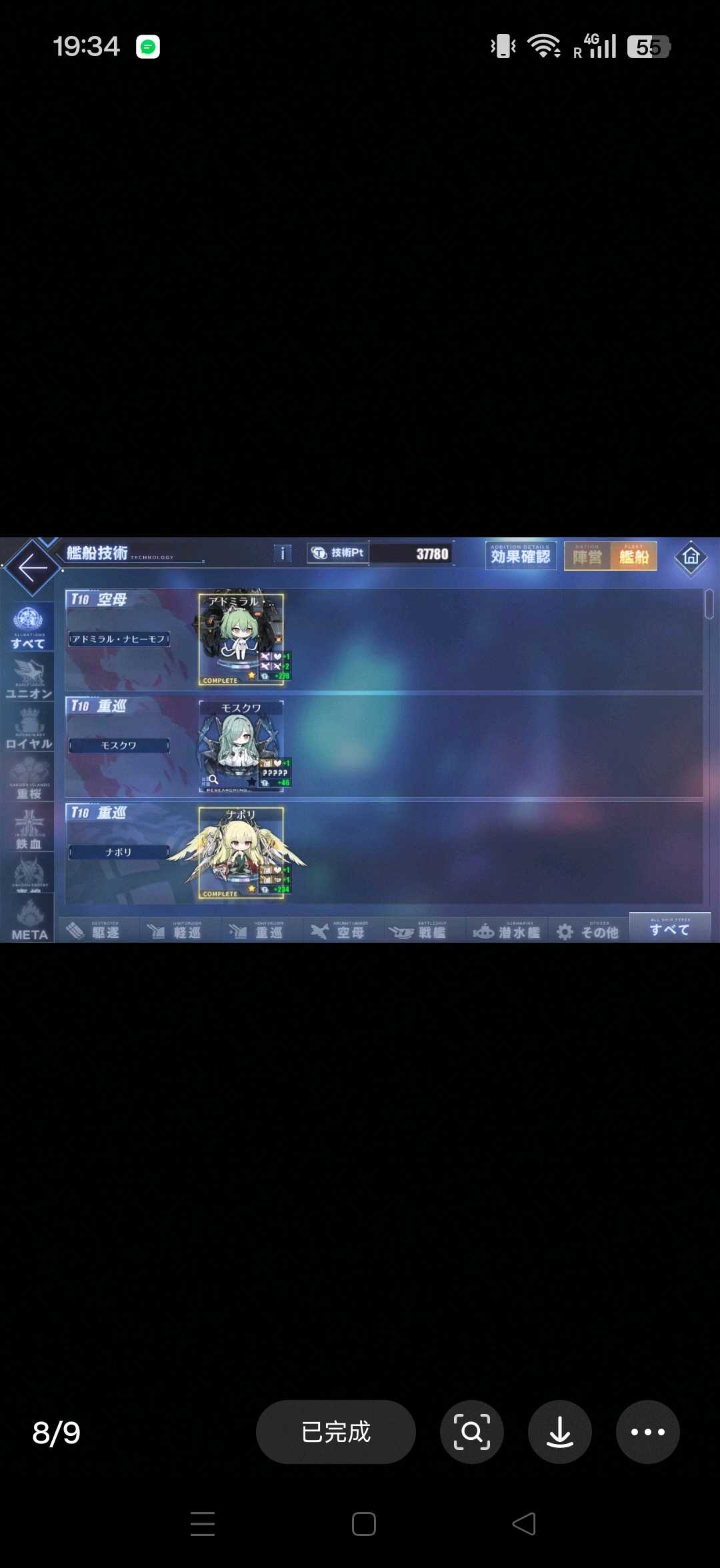 科技點37780,後排輸出類科技點除了沒有的船已經全部練完,前排差幾艘。總之,練度已經是輕鬆通關全部高難,meta15級的第一天就可一刀斬