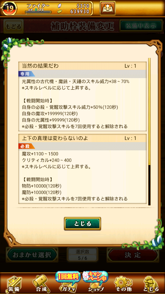 帳號內還有很多其他究極裝備可以放輔助欄