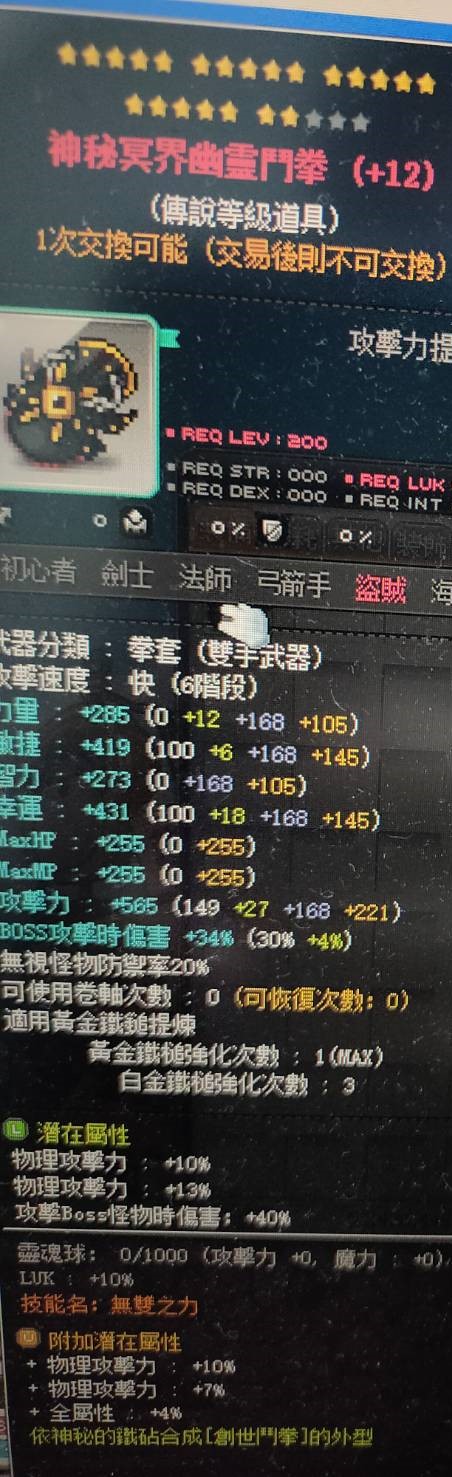 武器主職用潛:40%BOSS23%物攻(次頂職業主流主潛能 對等80%BOSS10%物攻)