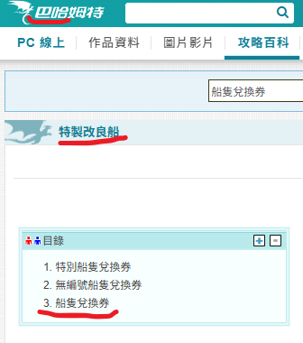 可在巴哈百科輸入特製改良船,下方即有抽獎船隻選單可供查詢。