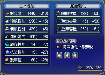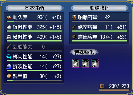 【強化性能】四滿:双帆滿、抗波滿、轉向滿
