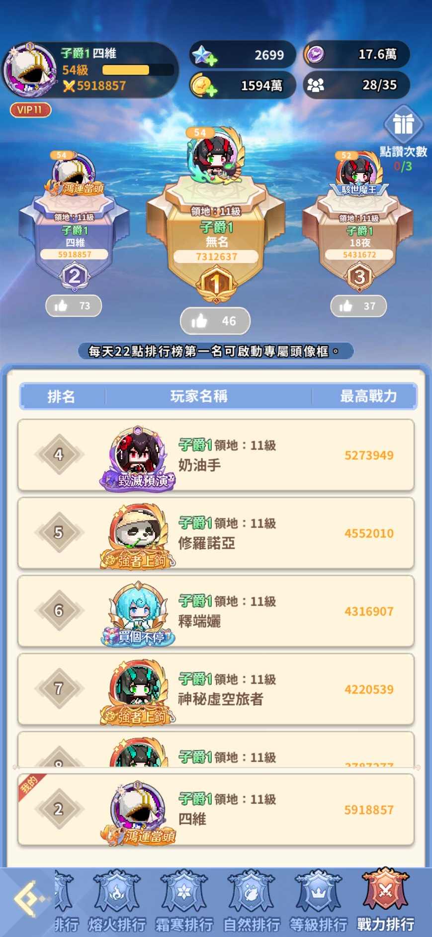 【54等】 12服 戰力榜2 青龍史詩1星