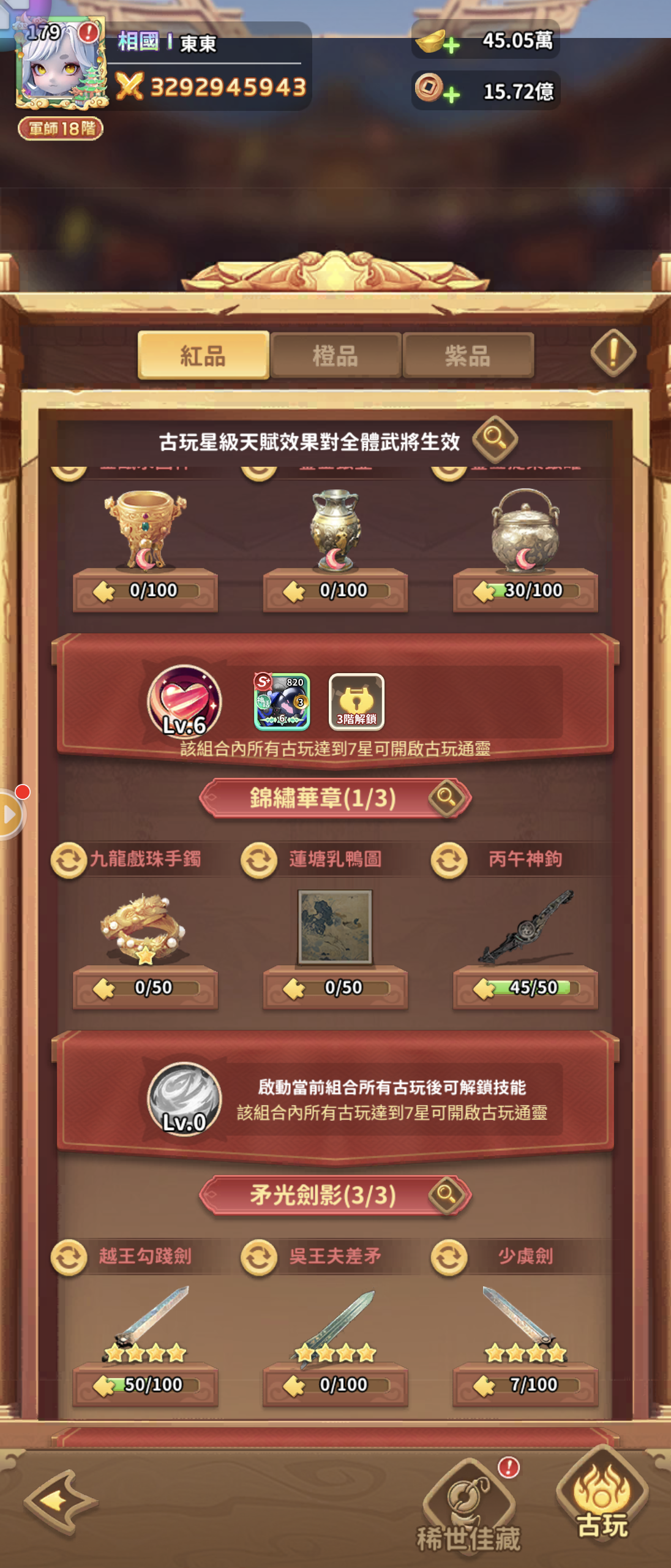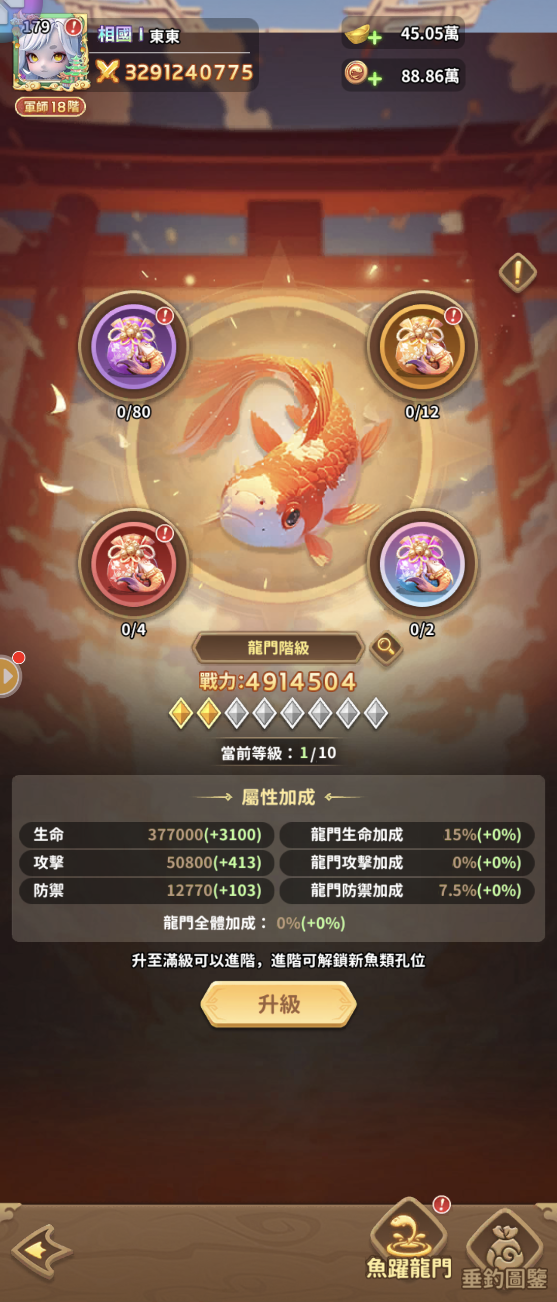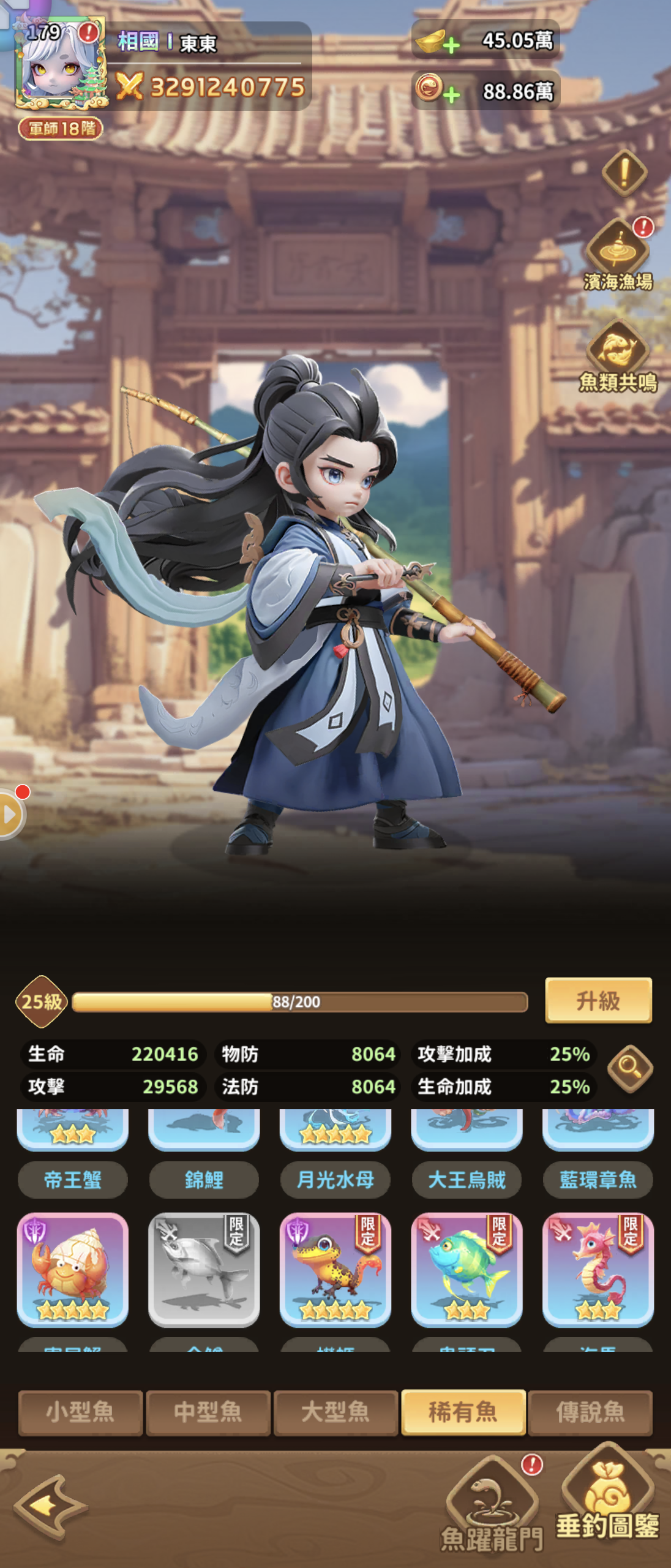 靈寵.神兵.古玩.碎運.稀有魚.傳說魚都有一定程度的練度