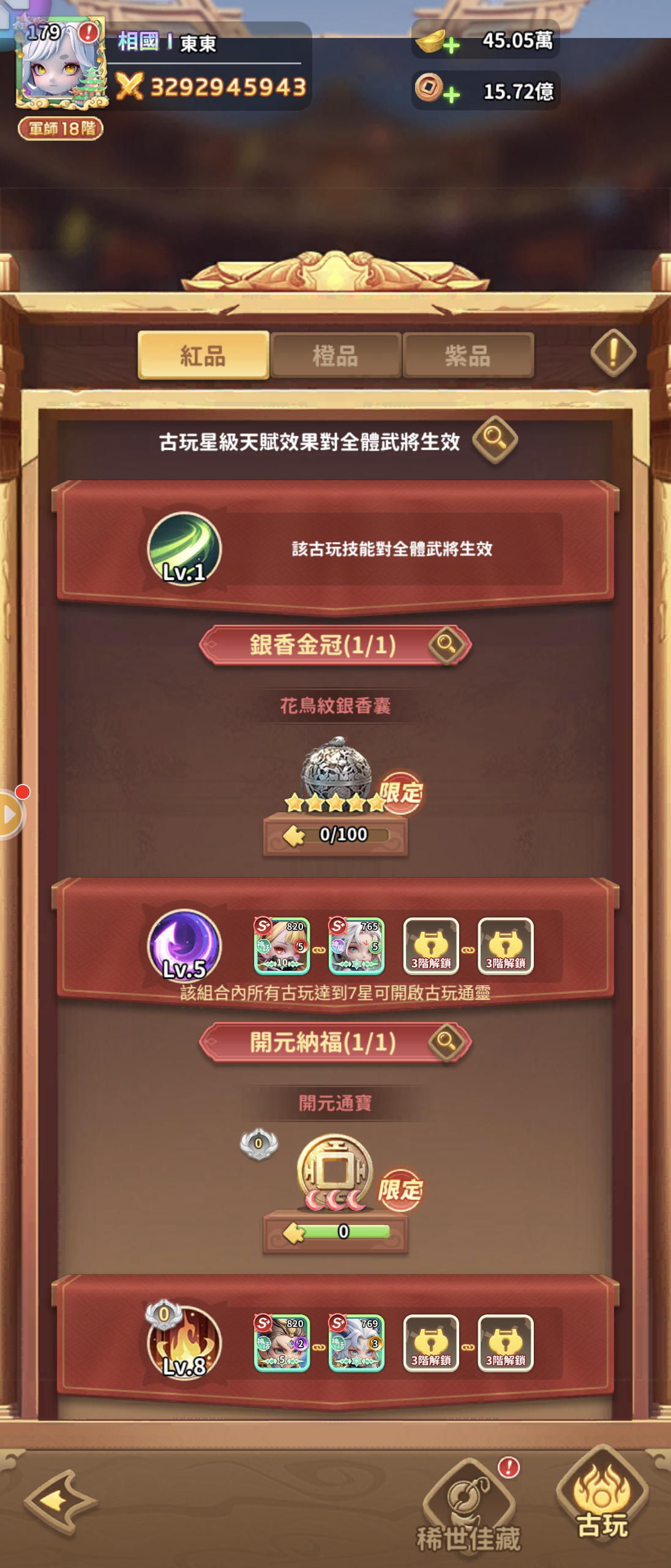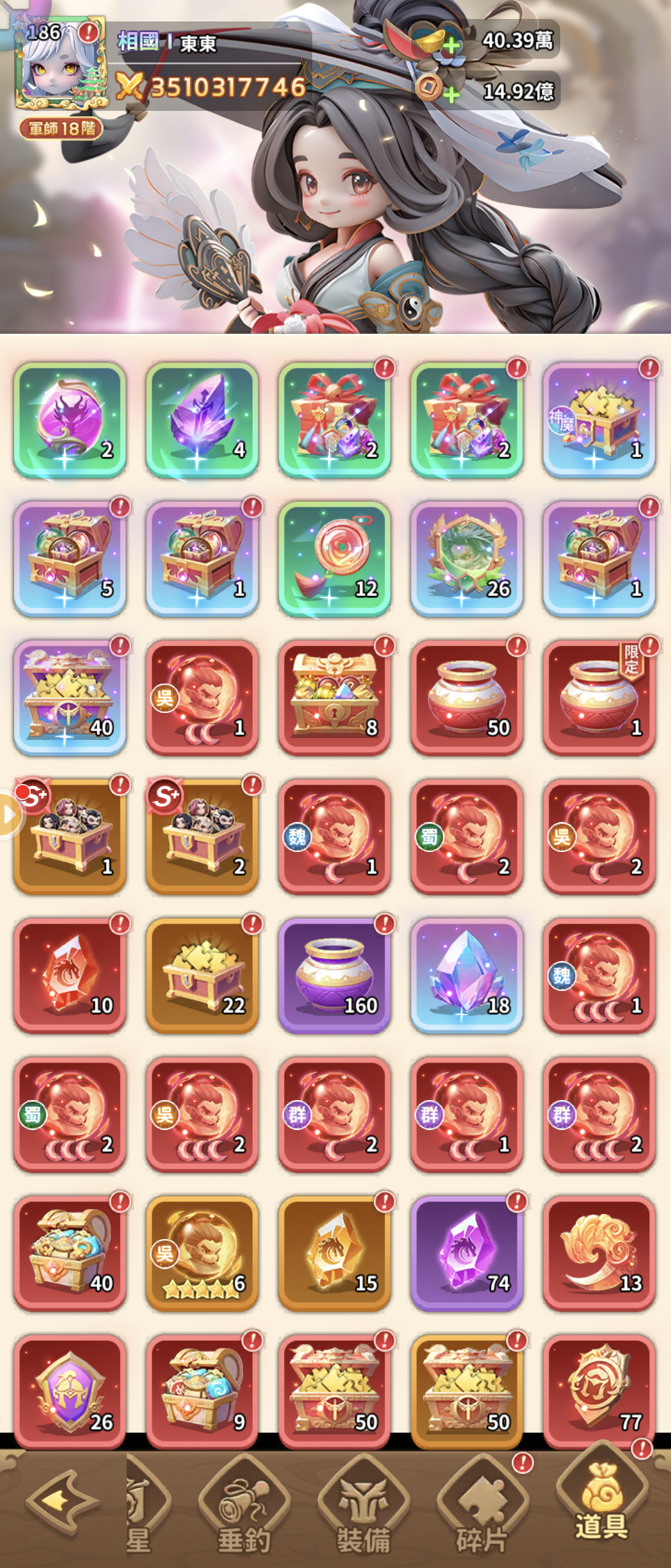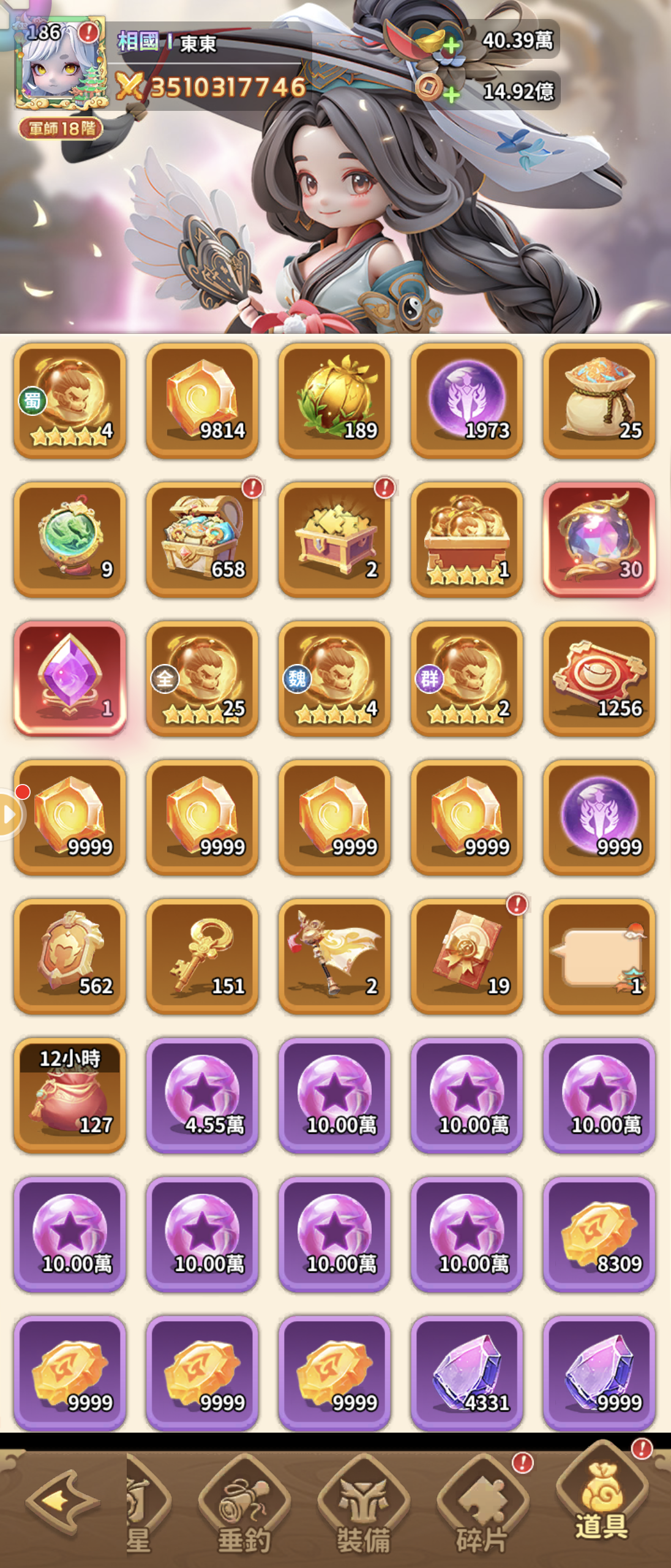 靈寵.神兵.古玩.碎運.稀有魚.傳說魚都有一定程度的練度