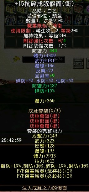 道具 240等衛士套裝 (+15碎15%) (+15碎13%) (+15妖13%)