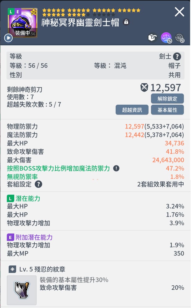 56超越 劍士頭盔 大傷增加2400萬!!