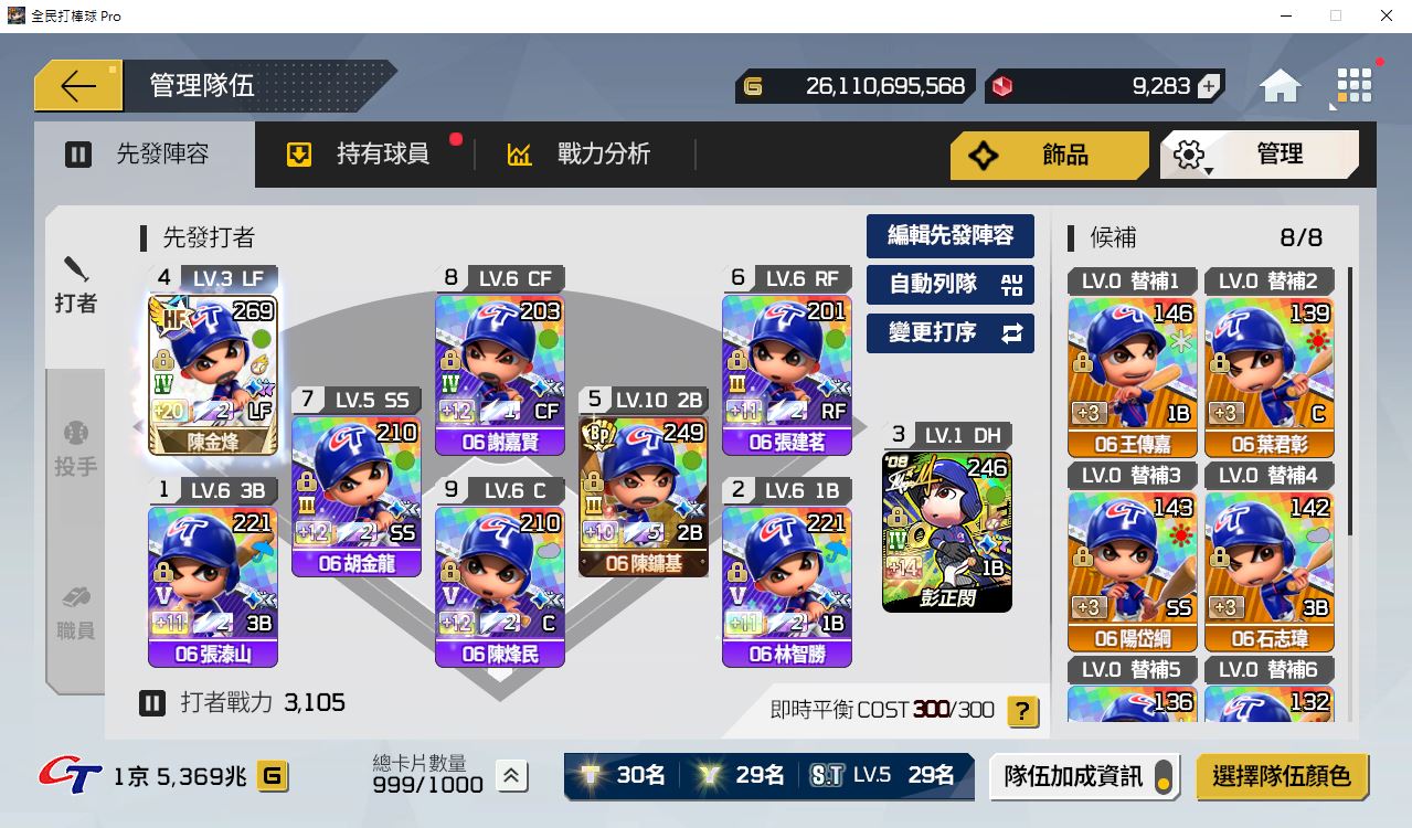 06年中華隊(5京3000兆),內含22年兄弟,價格誠可議(包含綁定空信箱帳號)