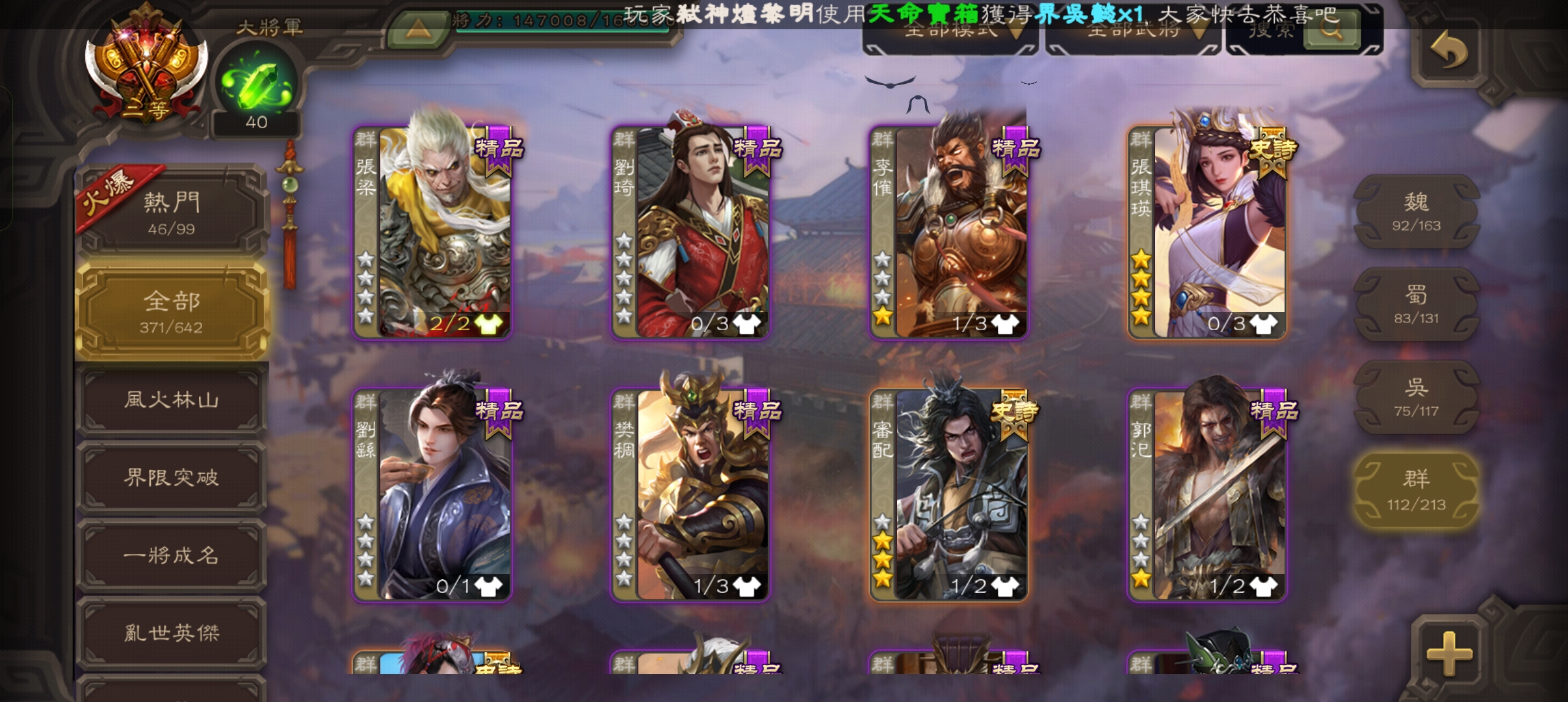 【193等】 二等大將軍,呼廚泉,神甘,神荀彧,史詩繁多,趣味十足