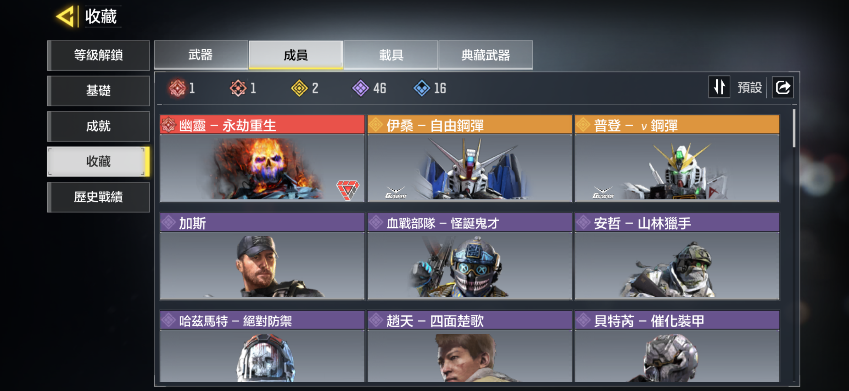 神話(紅)1、典藏(橙)1、傳奇(橙)11