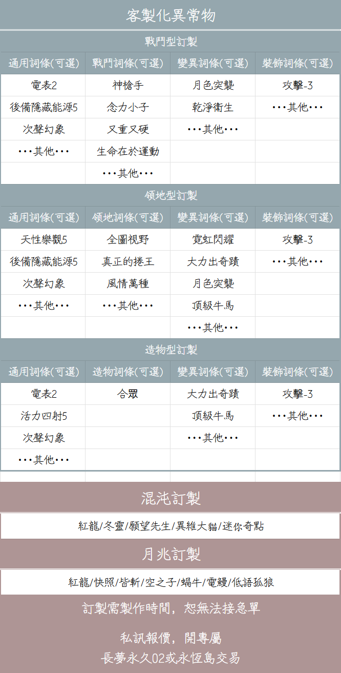 長夢永久02 永恆島 現貨異常物賣場