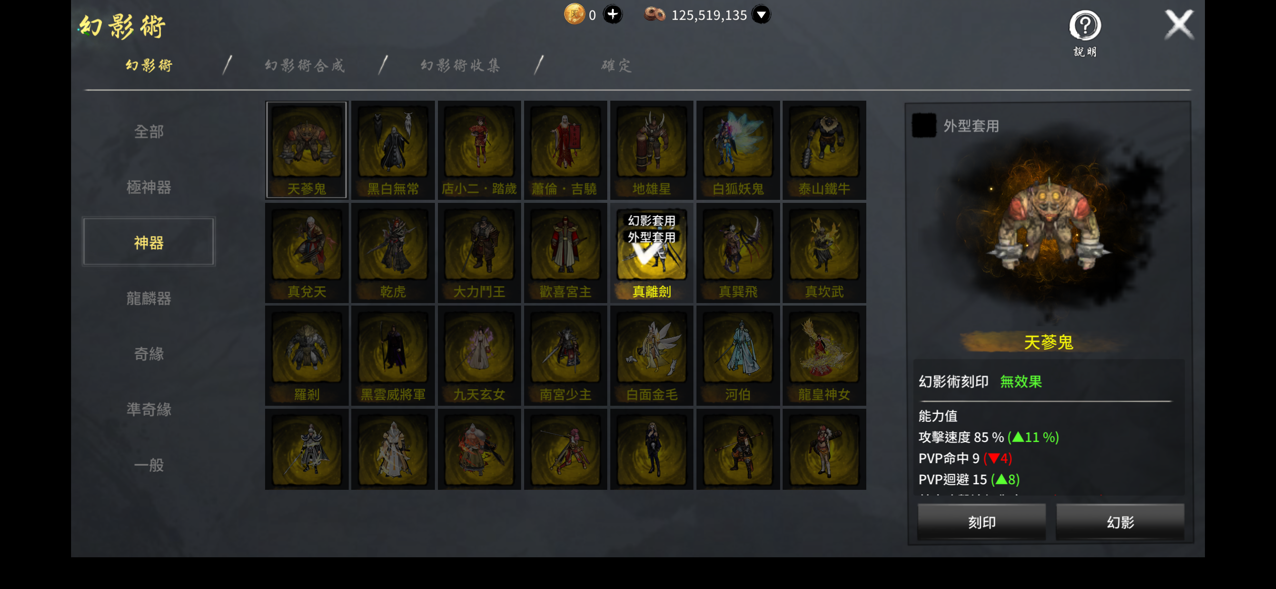必有一個神器金幻影一個、龍麒麟紅幻影二個
