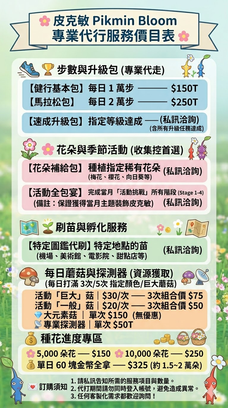 🌸 Pikmin Bloom 專業代行服務價目表 🌸