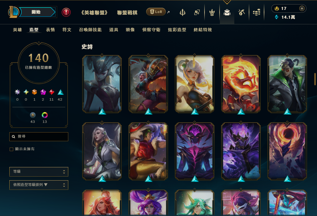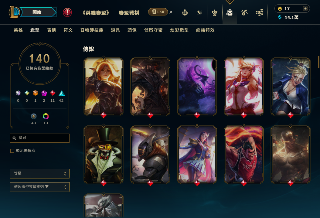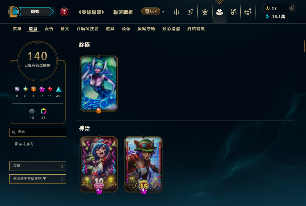 帳號 超豐富神話戰旗 + 神話特效 / 造型140個 + 藍粉14.1萬 + 全英雄