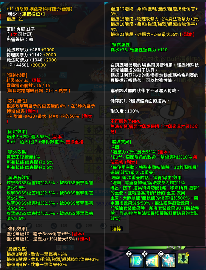 鞋子:給B傷害10.40% 芯片 流血+4%/HP -9420