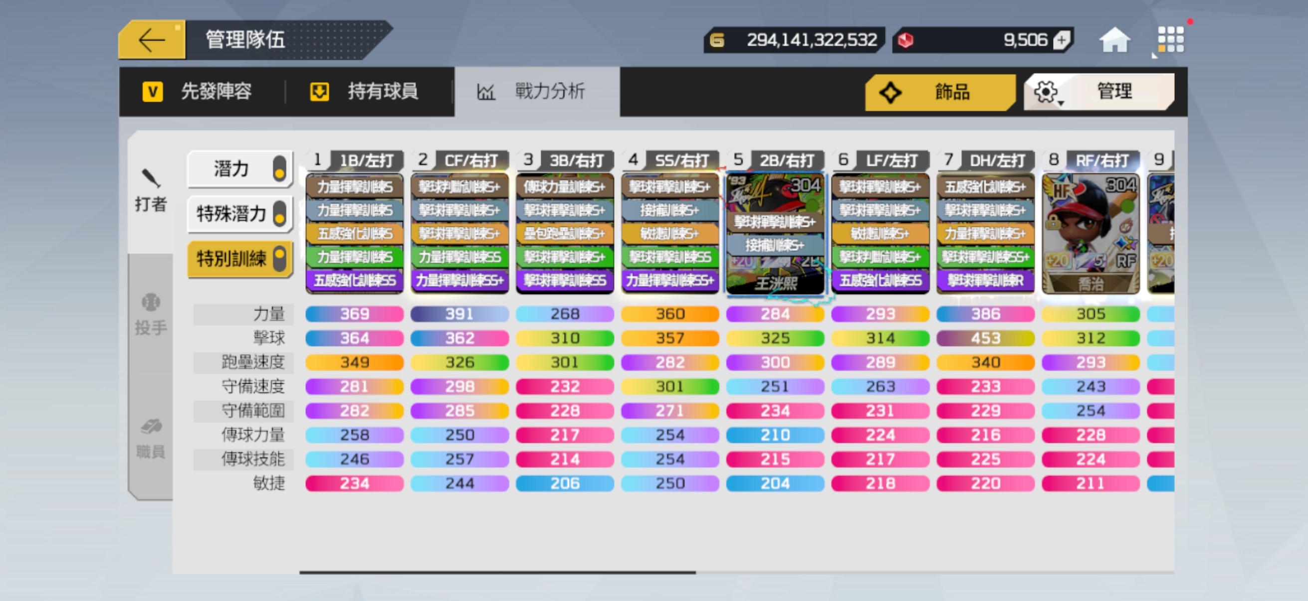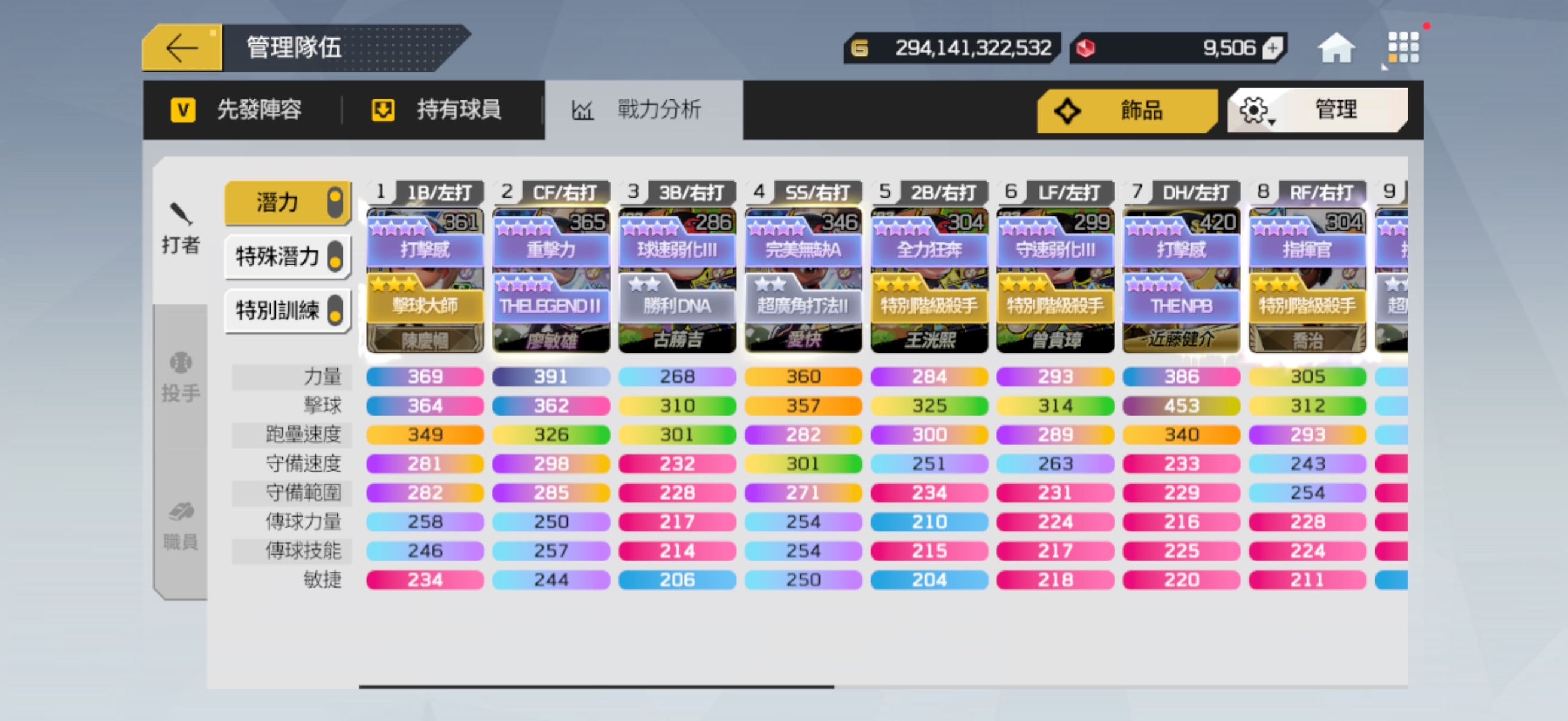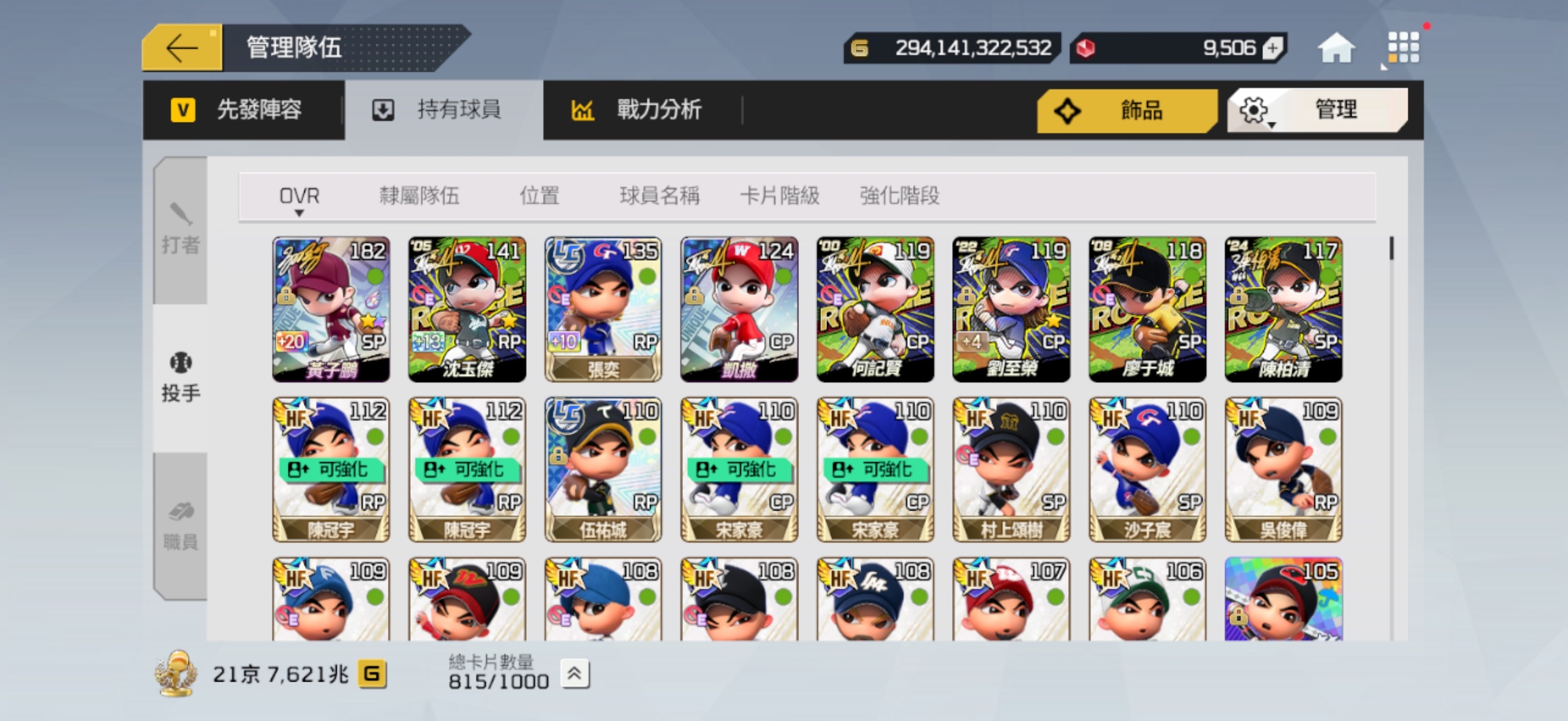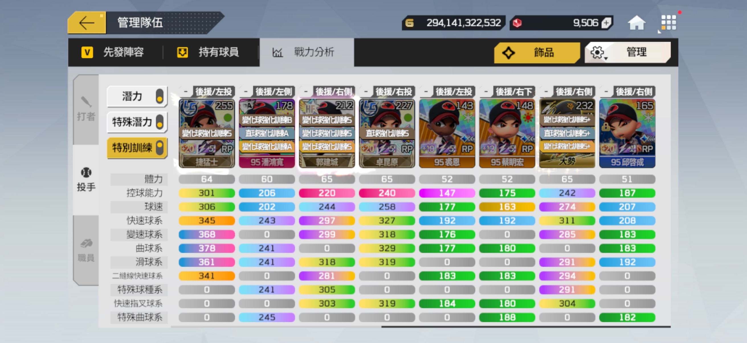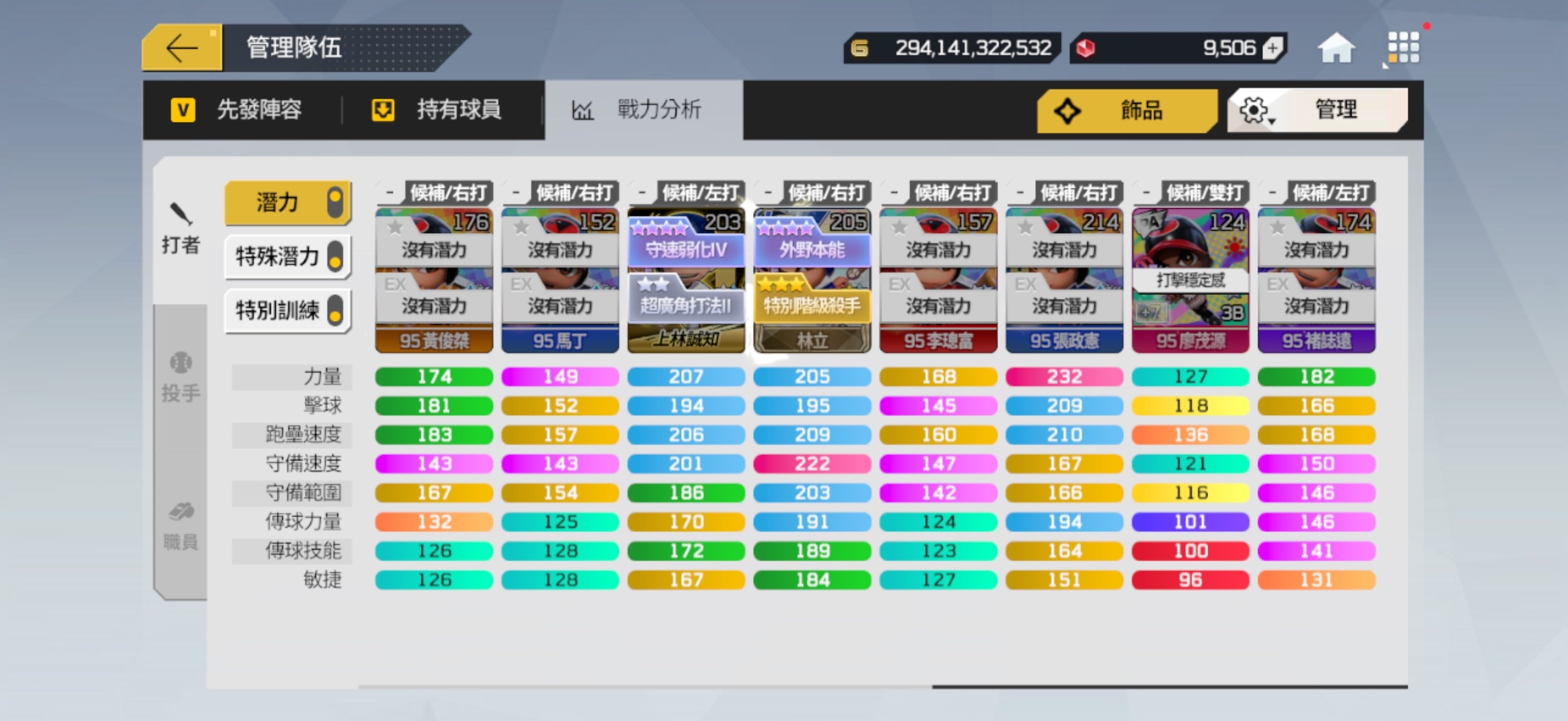 先發陣容也有配一組可打平衡的隊伍 (球員箱有1張LE+20廖敏雄)