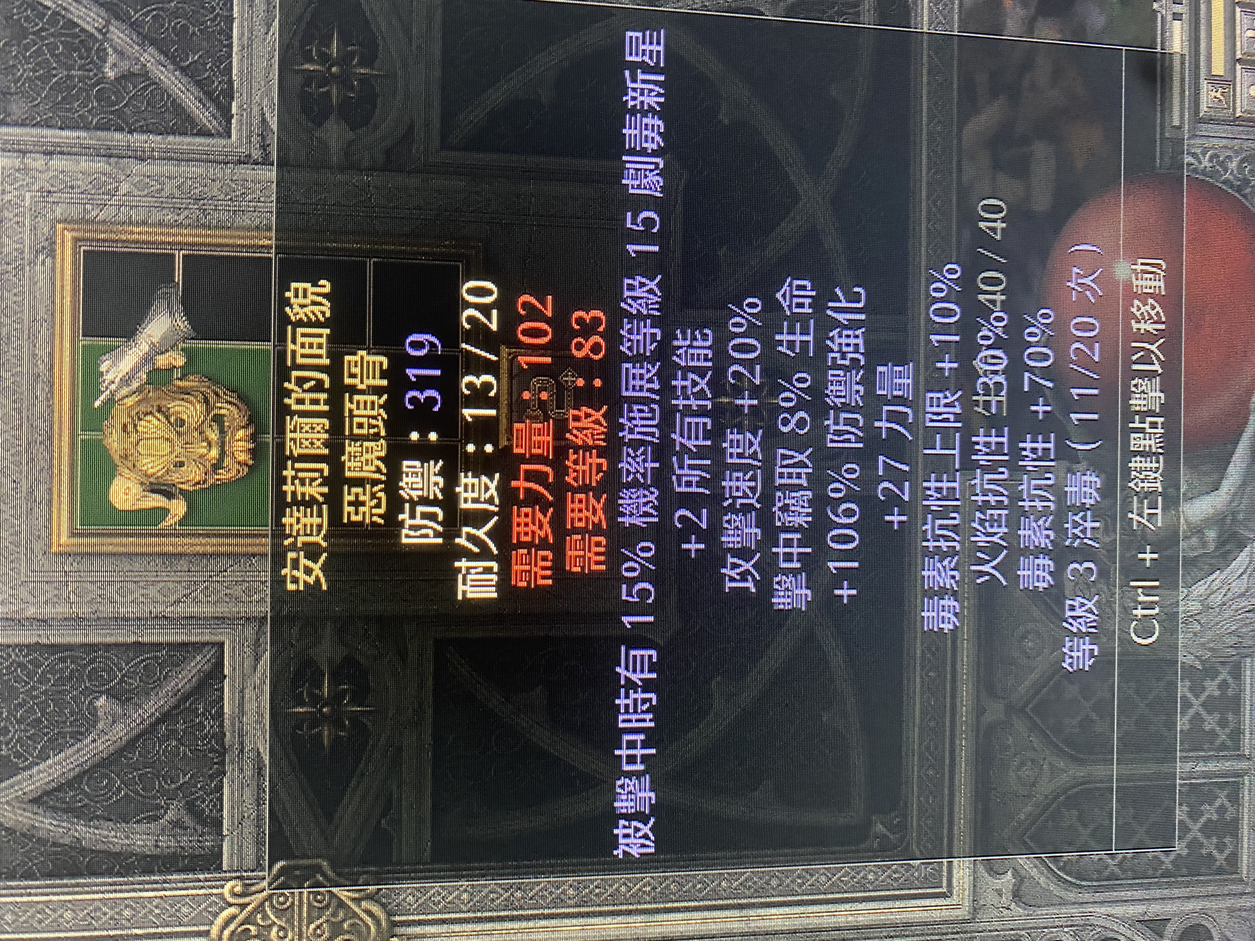 非天梯 刺客頭 20高施 18力 15全抗 未打洞 刺客黃頭