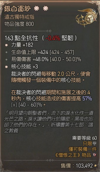 賽季S12 2太古 銀白面紗 力量182 核心+3 特效57%