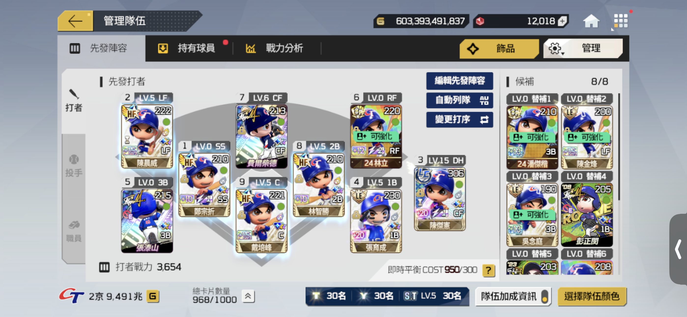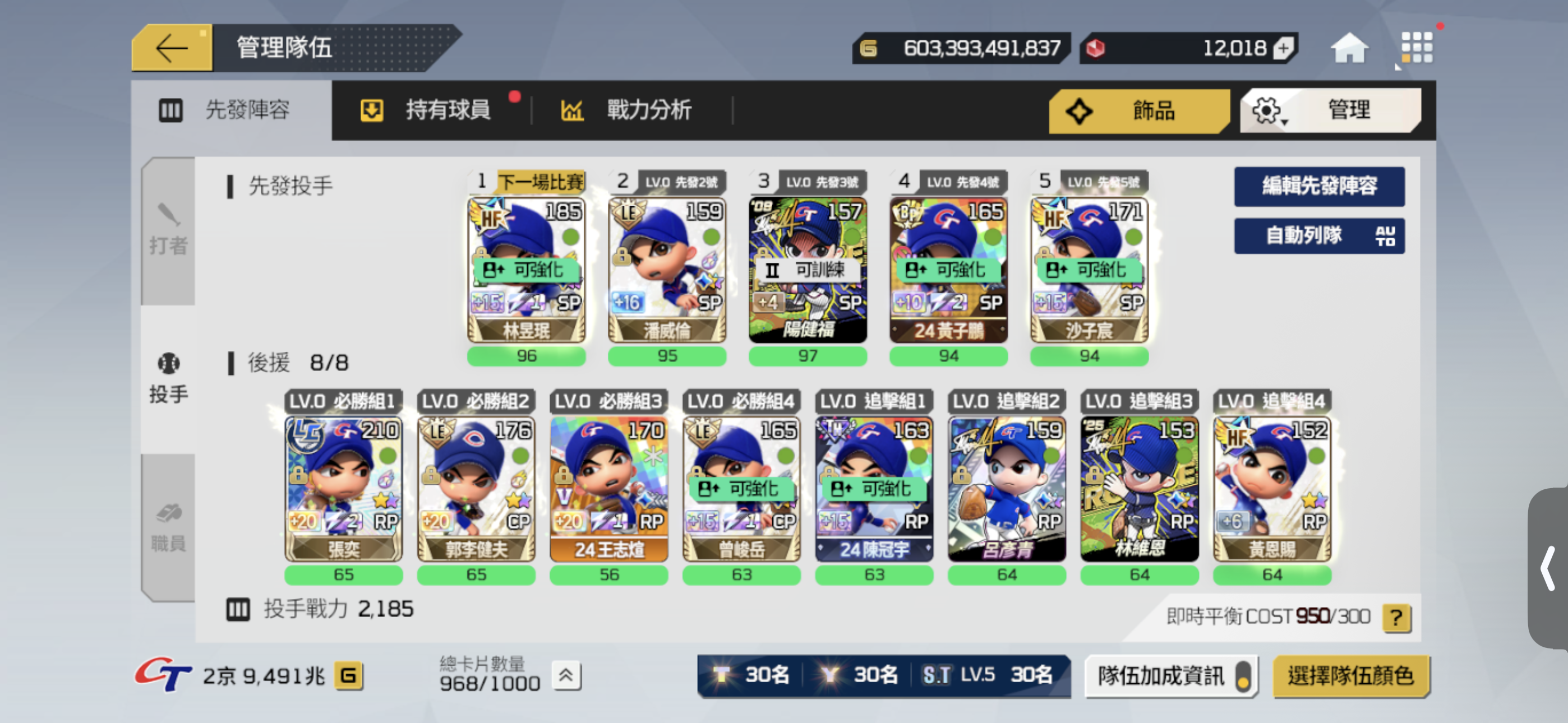 【65等】4.5京 26年中華隊 皆為頂級卡階 大師裝備 抽獎券多 打者強化高加成