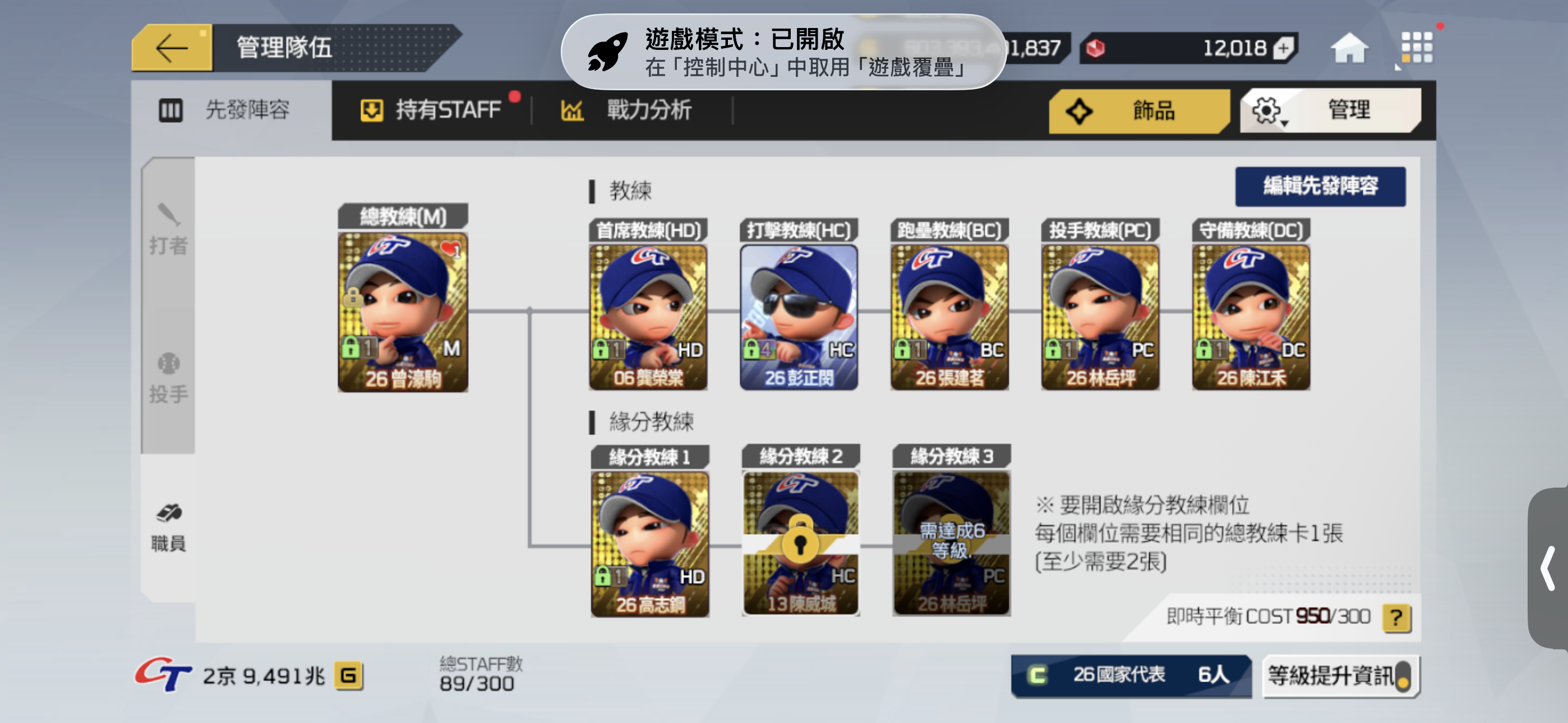 【100等】 約3京 費仔24年中華隊 皆為頂級卡階 最強教練 大師裝備 錢8千億 +10自選