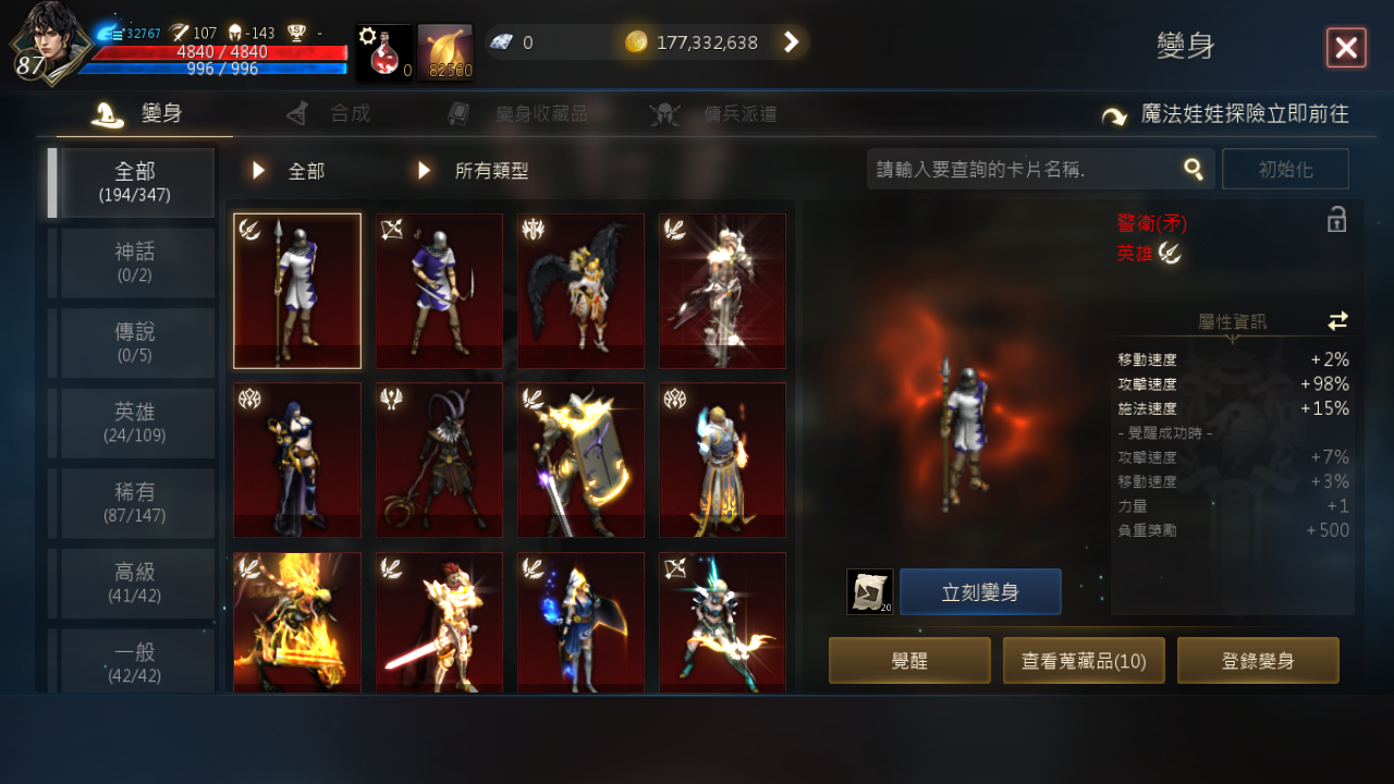 【暗黑騎士、88等、妖精之森】賣妖森-88等紫變暗騎打幣機帳號-名譽弊636萬-+9紅騎士武器
