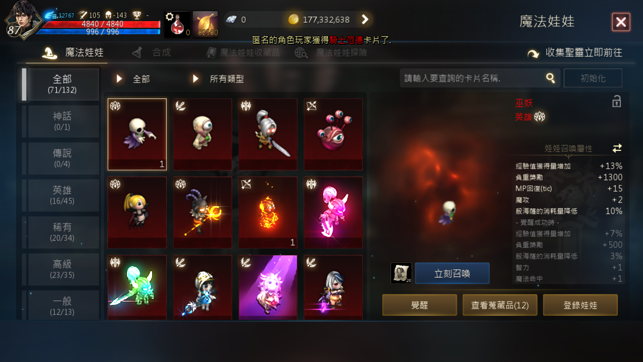 【騎士、88等、妖精之森】賣妖森-88等紫變騎士打幣機帳號-名譽弊187萬-+9紅騎士武器