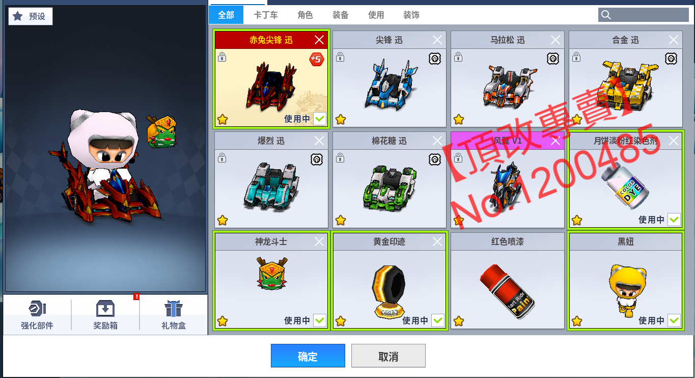 內容:誅仙四劍訊 + 先驅者迅 + 5紅框V1(克洛諾斯V1+黑色甲蟲V1+黃金遊俠V1+阿提密斯V1+紅旗V1) +黃金爆刃 V1 (車輛都頂改)