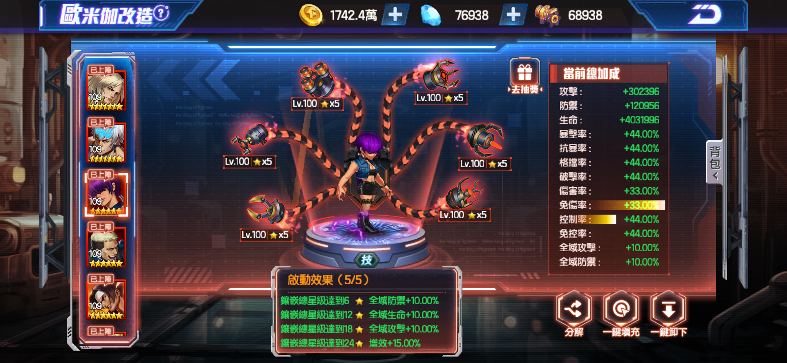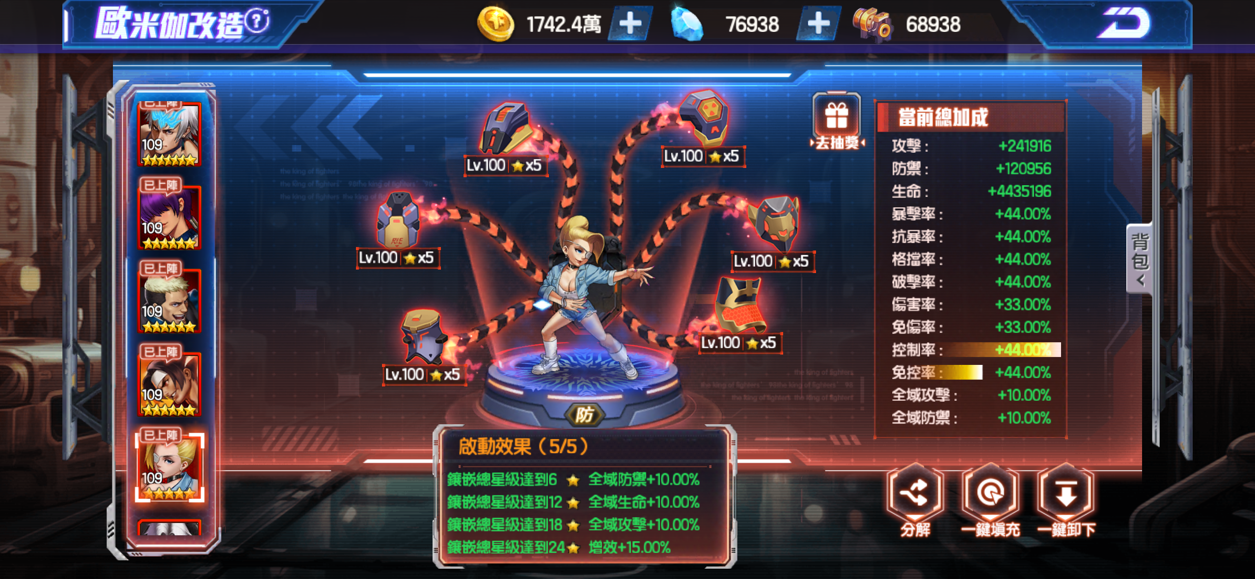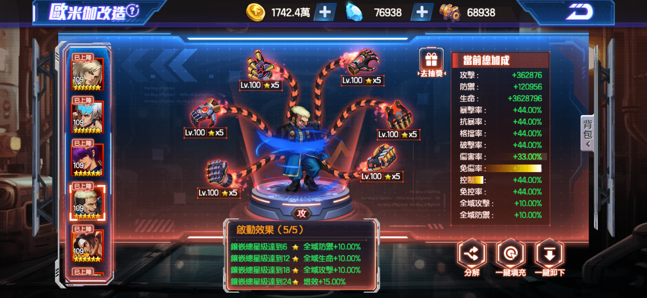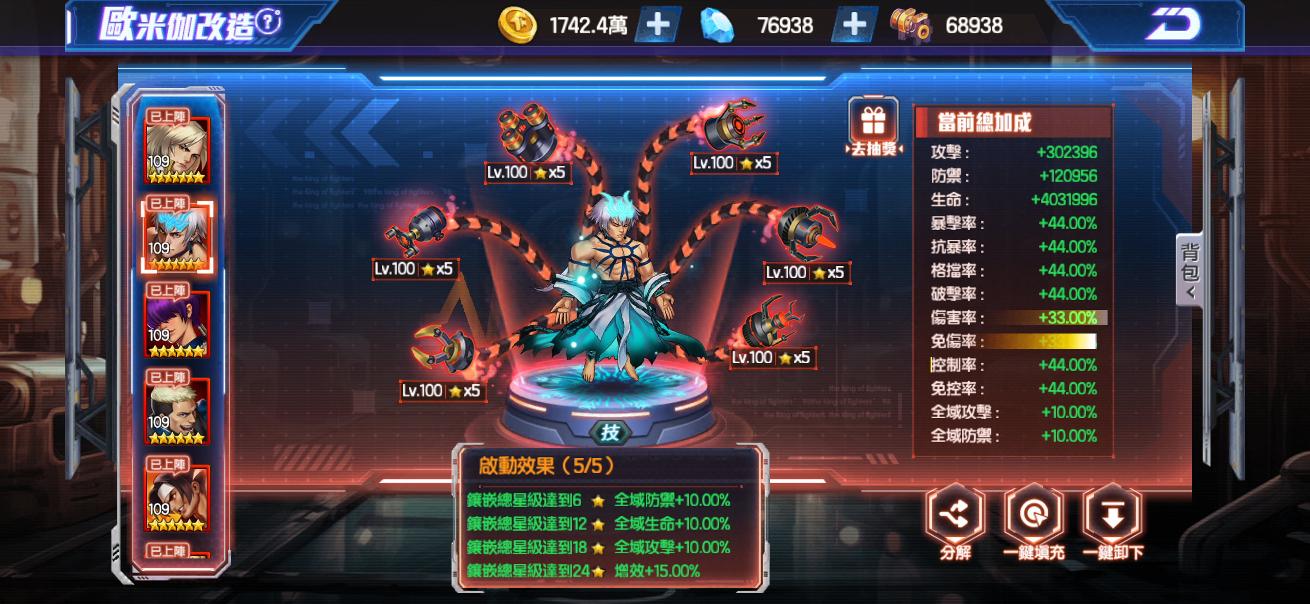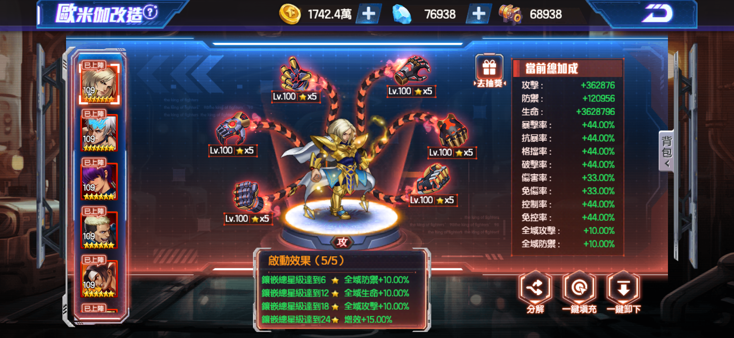 歐米茄5套滿(攻*2 技*2 防*1)