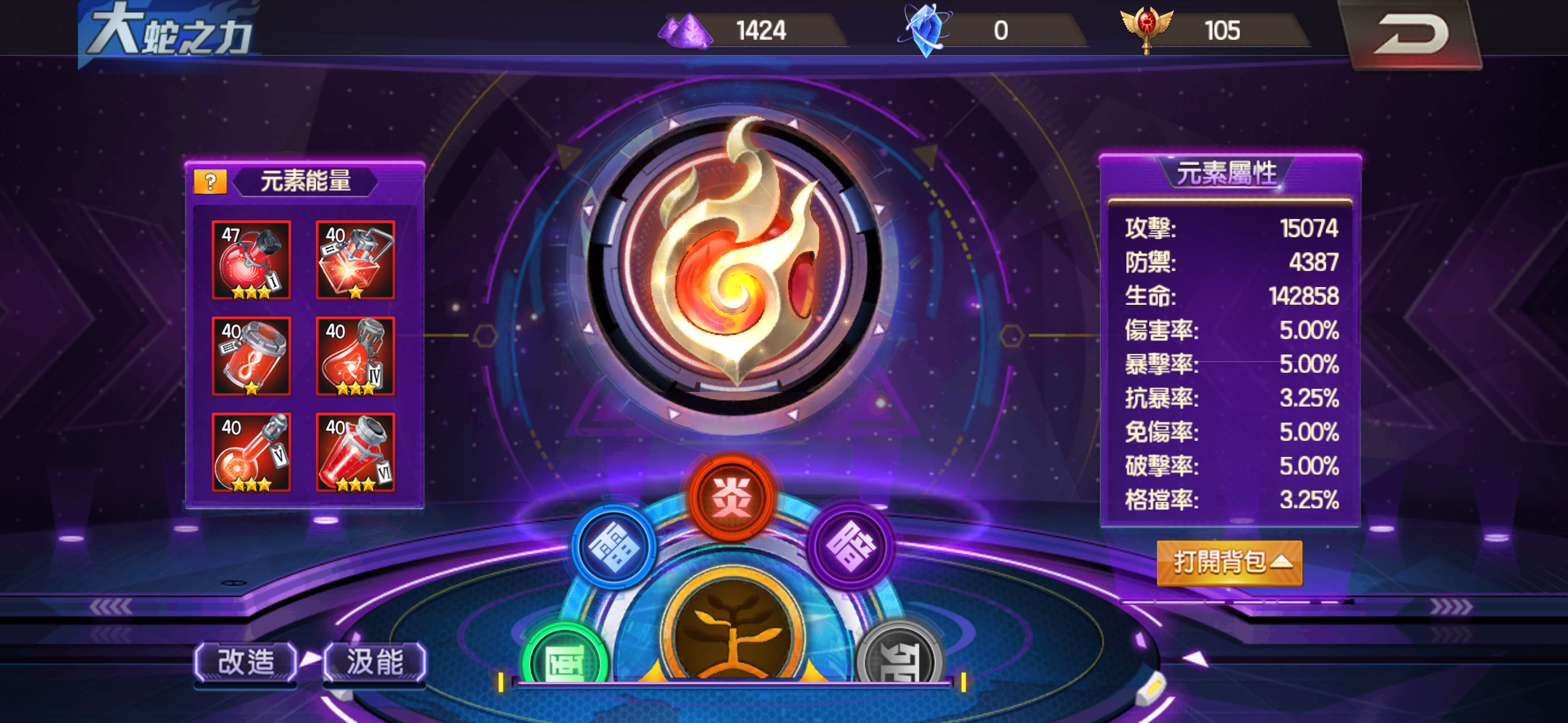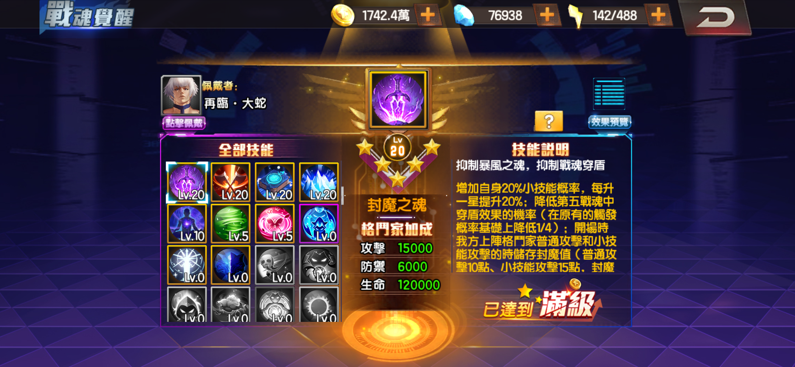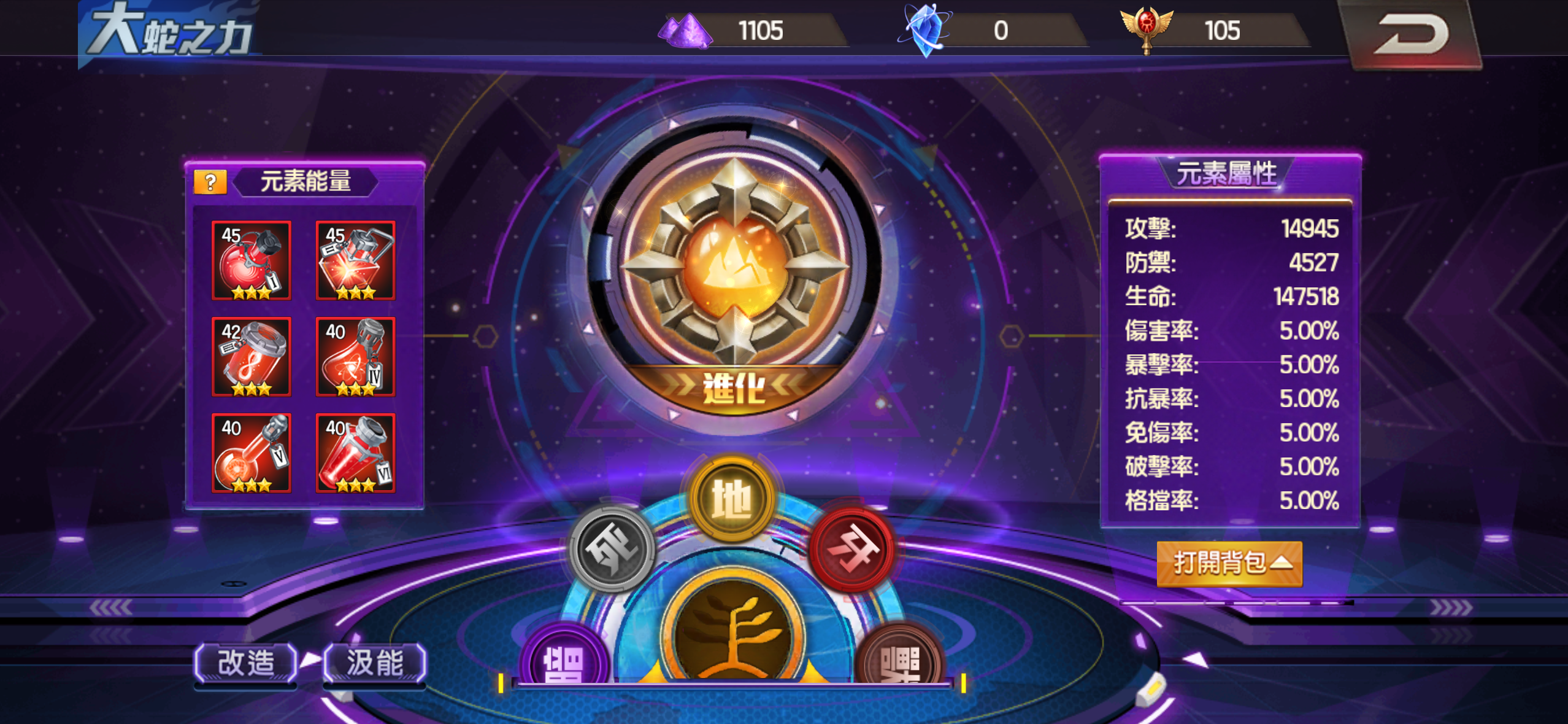 大蛇有鐮刀 地門滿 炎門差20顆催化石可以滿 其餘門全紅