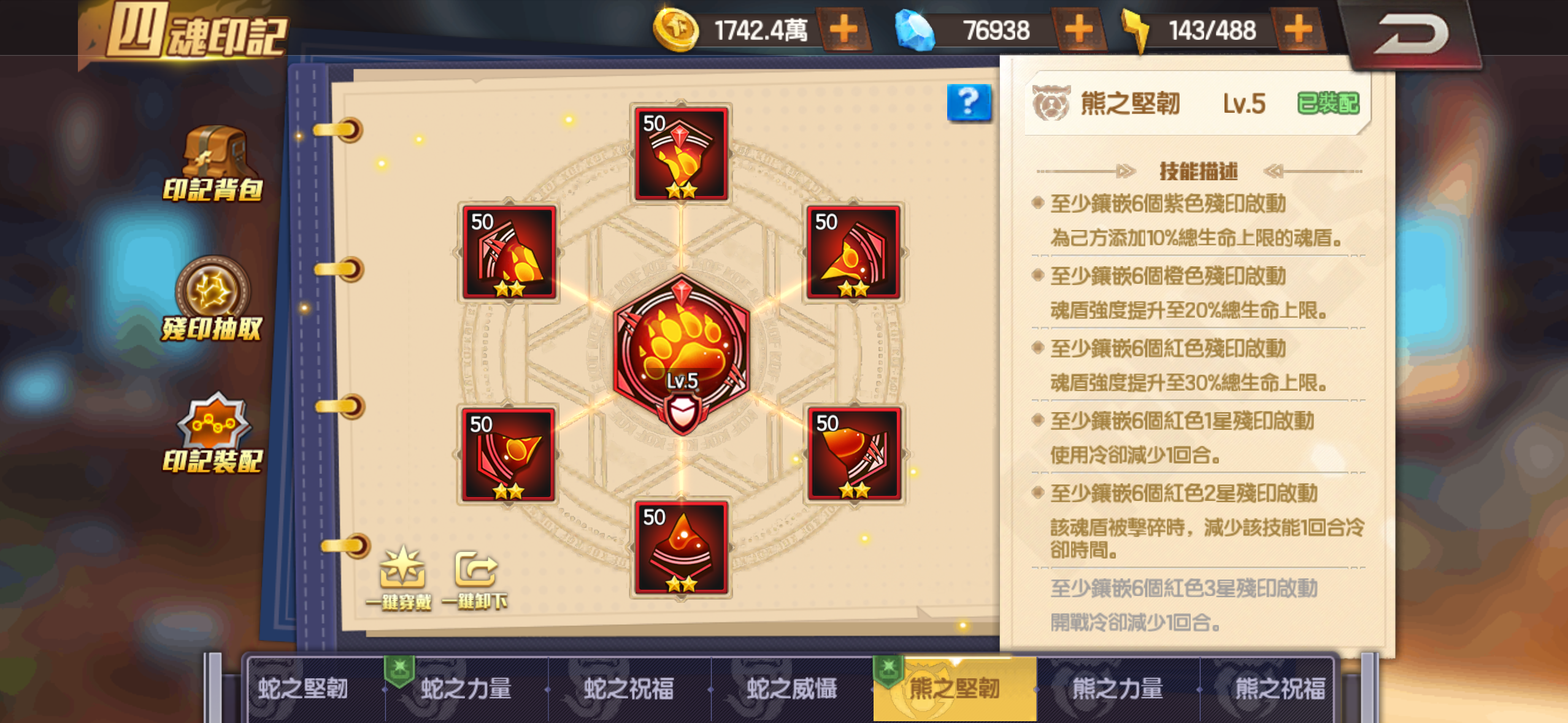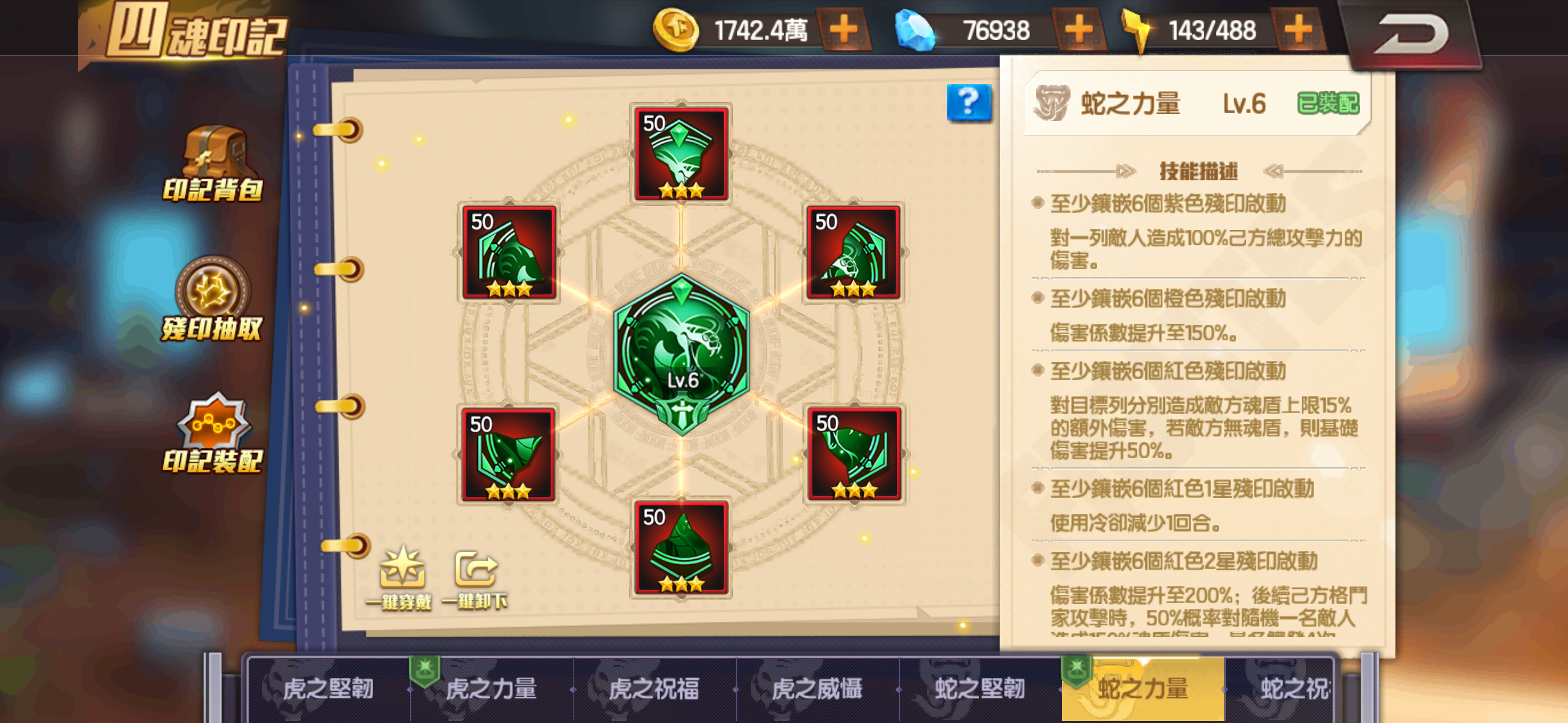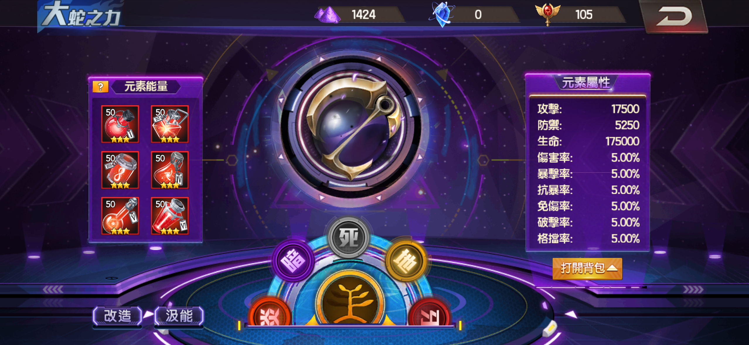 大蛇有鐮刀 地門滿 炎門差20顆催化石可以滿 其餘門全紅