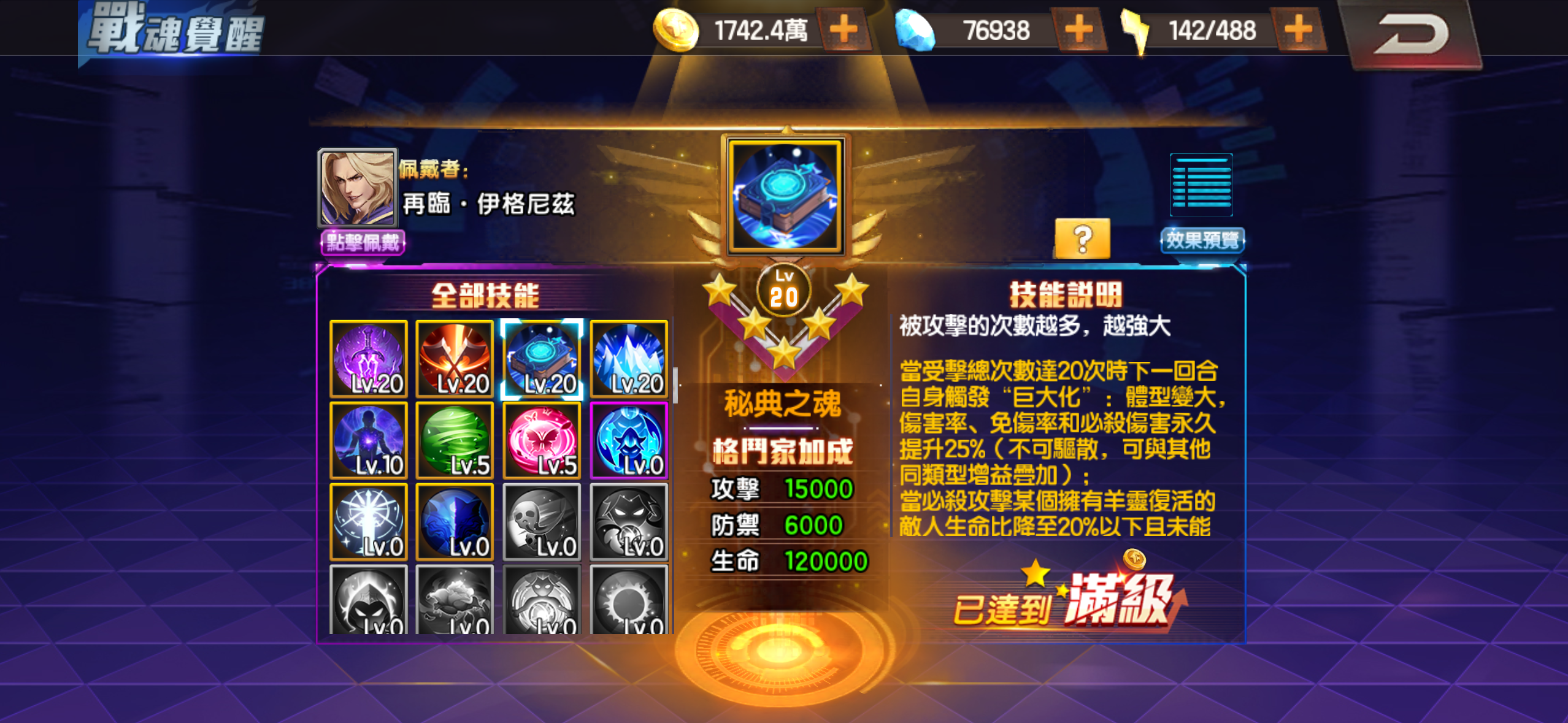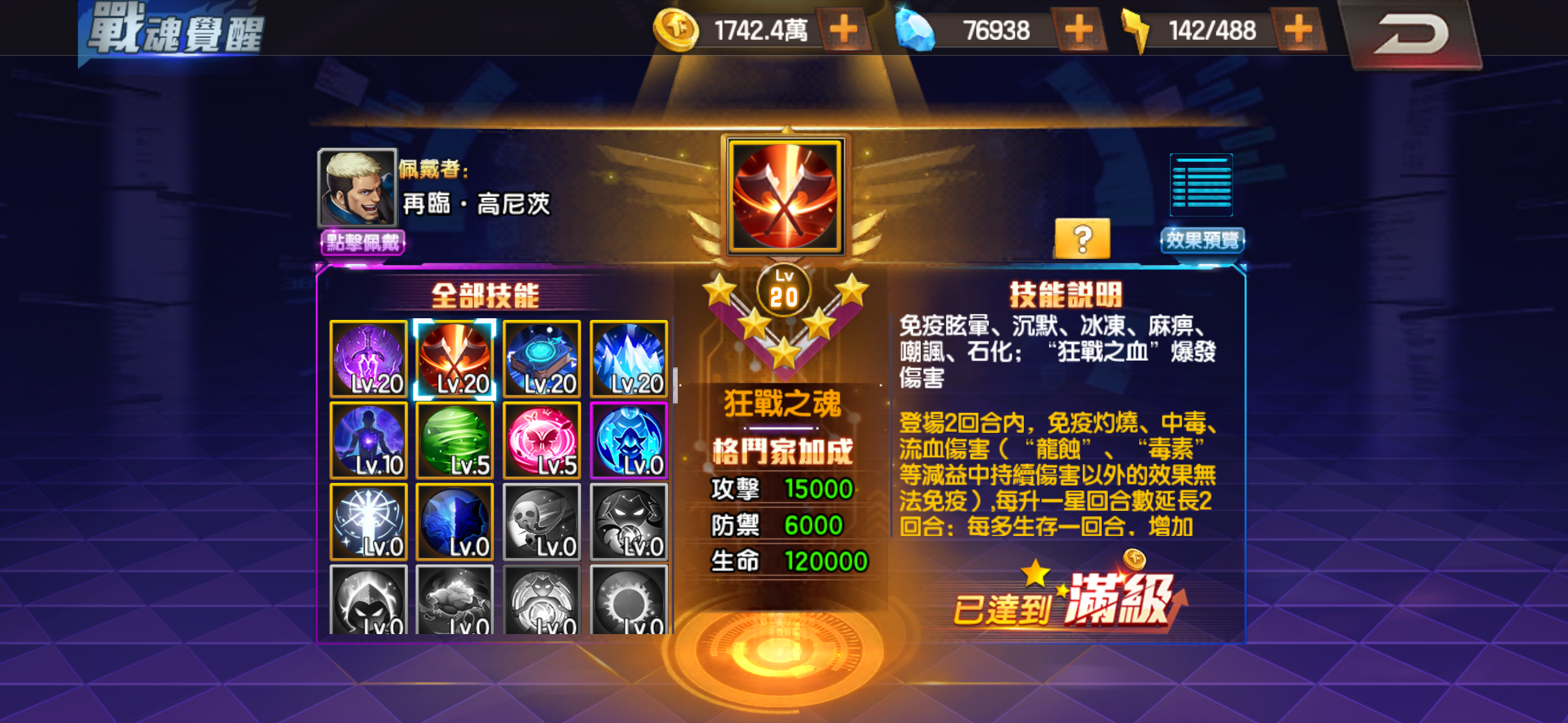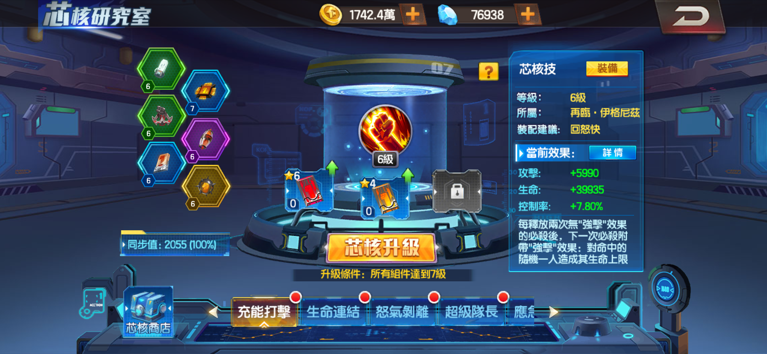 芯核 超級隊長13級 爆氣強化 怒氣剝離9級 充能打擊6級