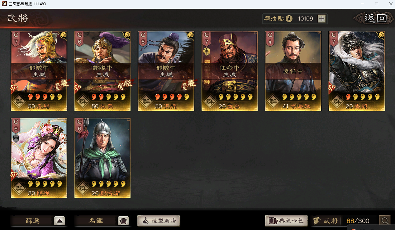 肚子裡有許攸*2 龐統*3 左慈 典藏皇甫嵩 典藏馬岱*2