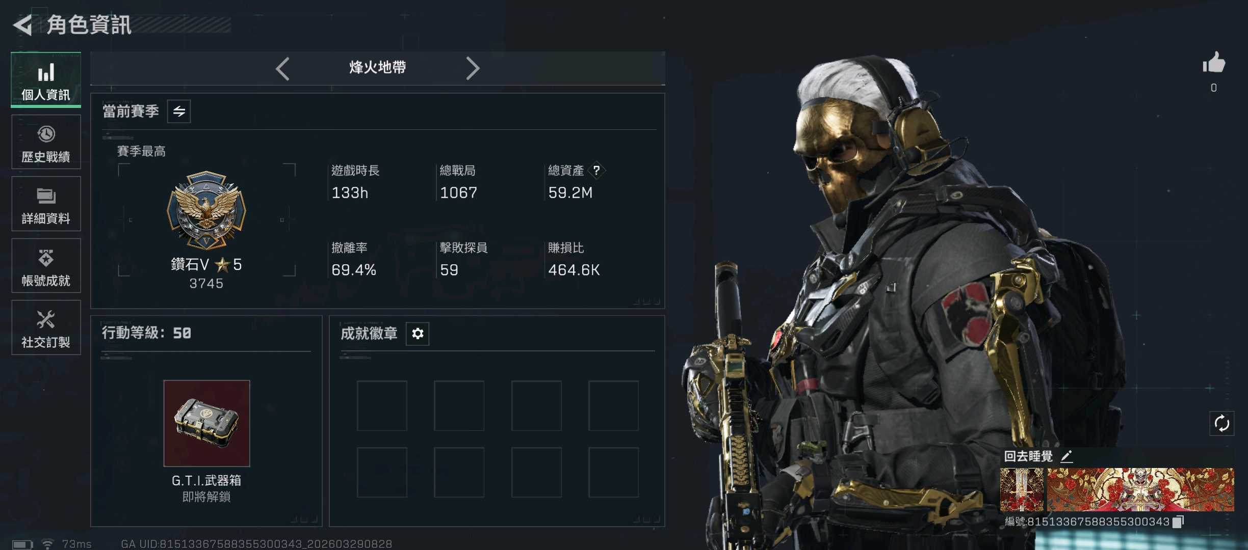 總資產(M)1、哈夫幣(萬)9000、三角幣1、三角券1