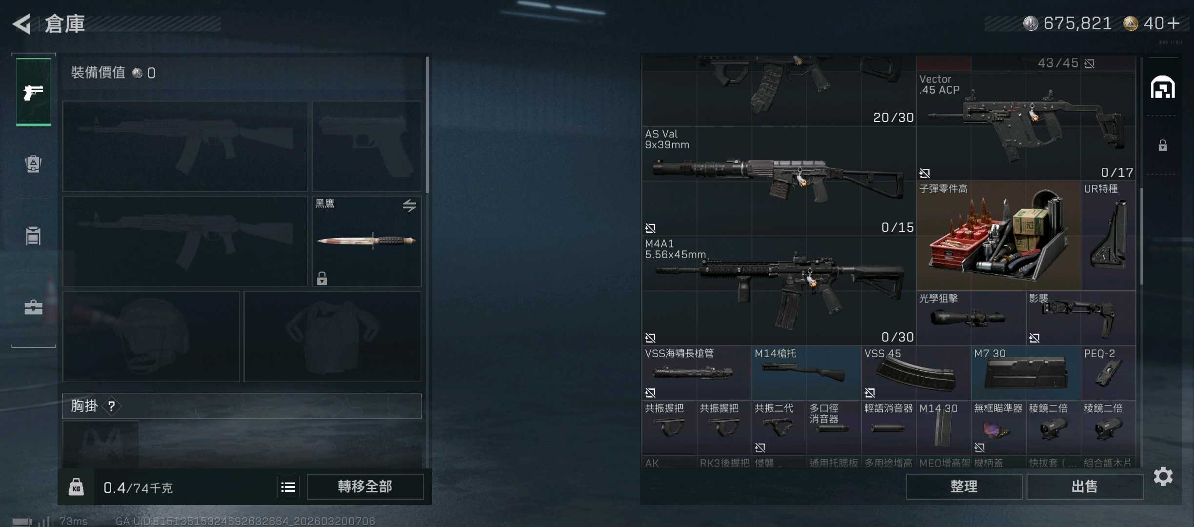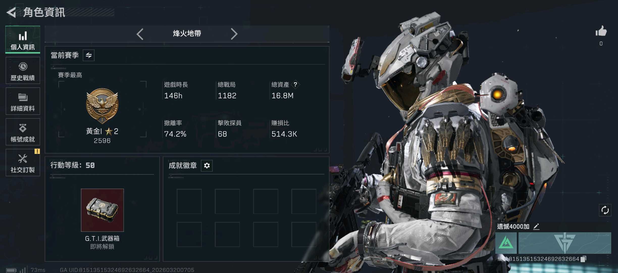 總資產(M)1、哈夫幣(萬)9000、三角幣1、三角券1
