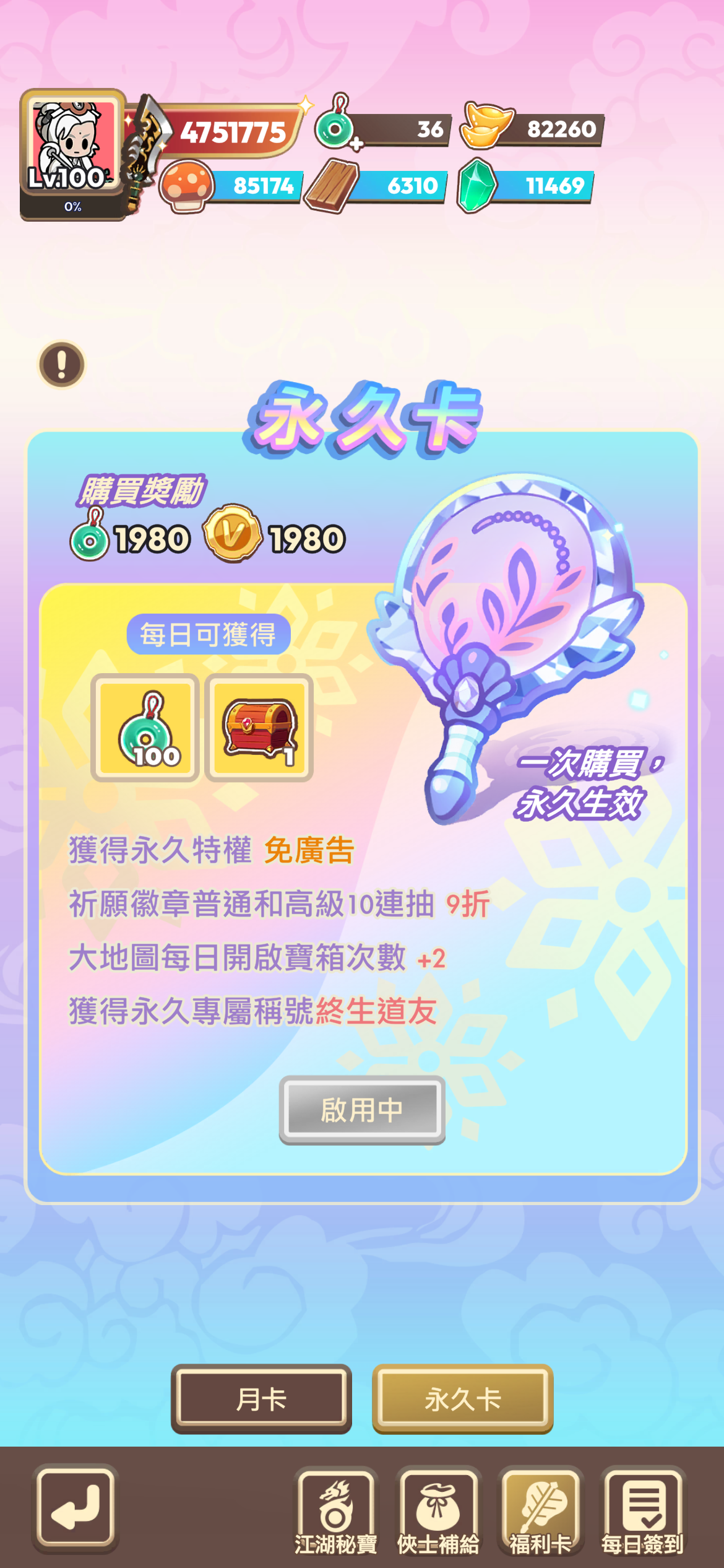 【100等】 S8-VIP6戰力475萬全角色、永久卡