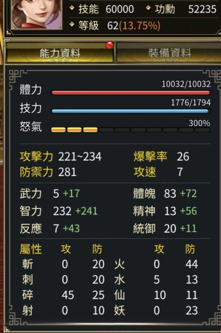 加持到64 血量破萬 總智力快500