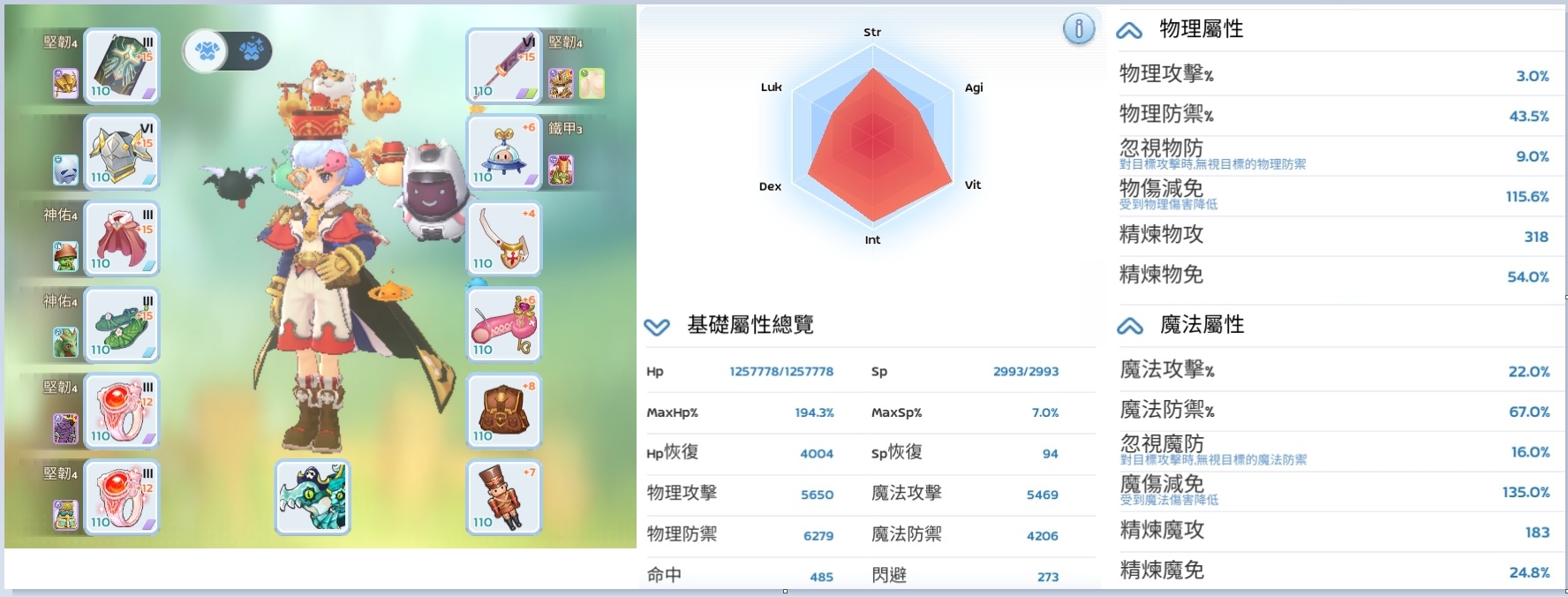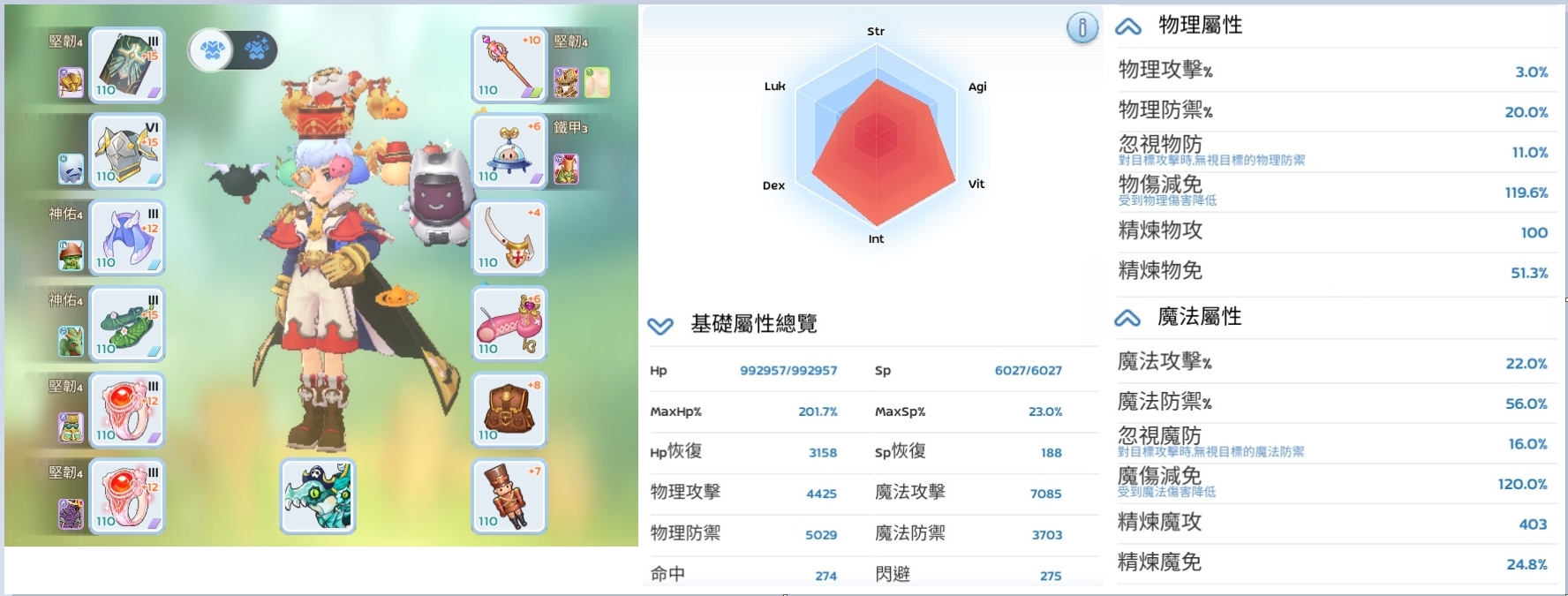 小條屬性大部分都洗到物傷減免、還有全洗滿的~