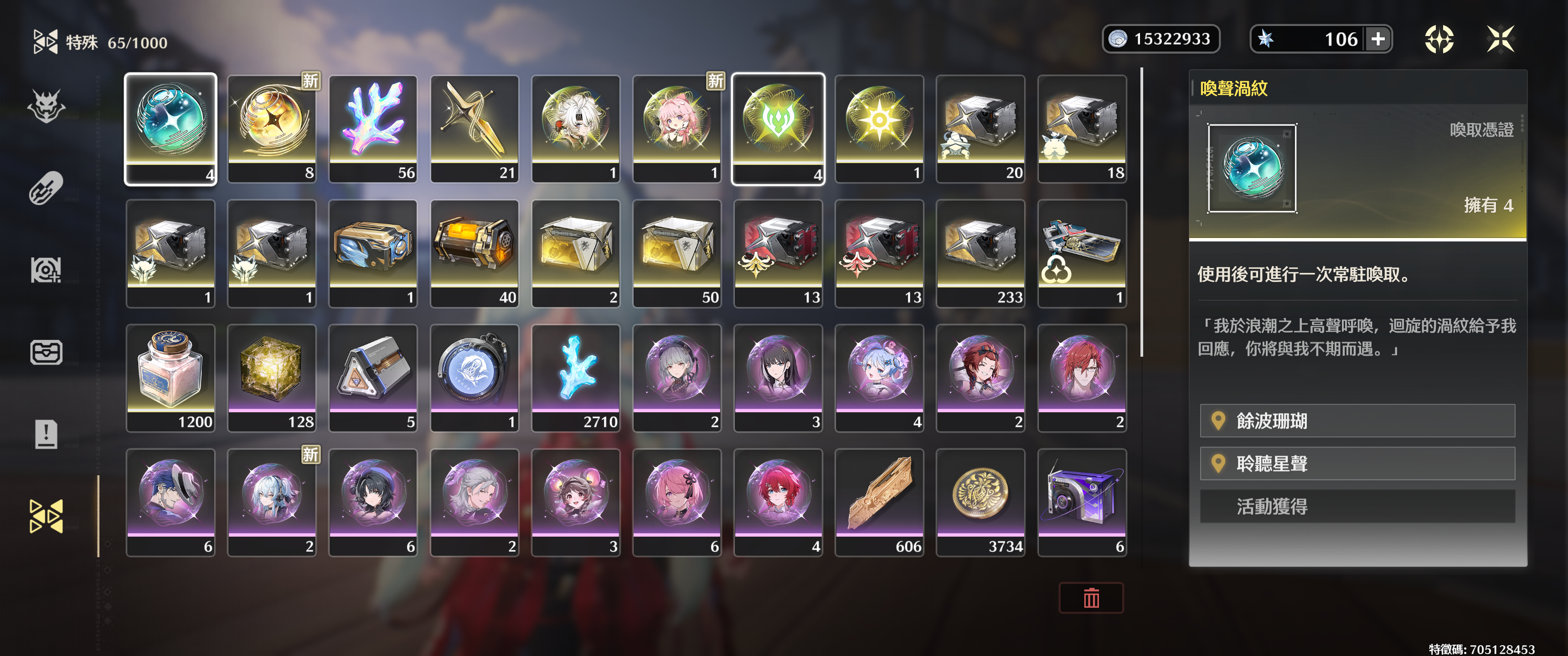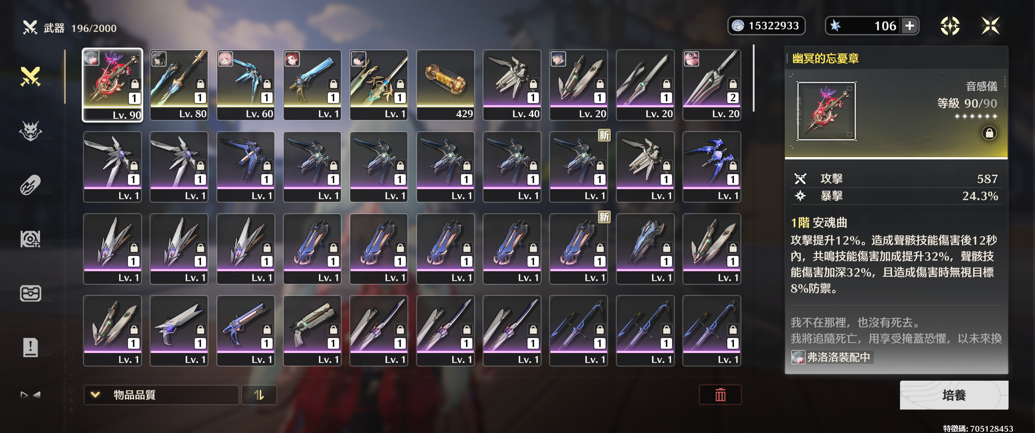 【60等、6金角、3金武】21奧古斯塔01尤諾01琳奈00莫寧629珊瑚14武器抽