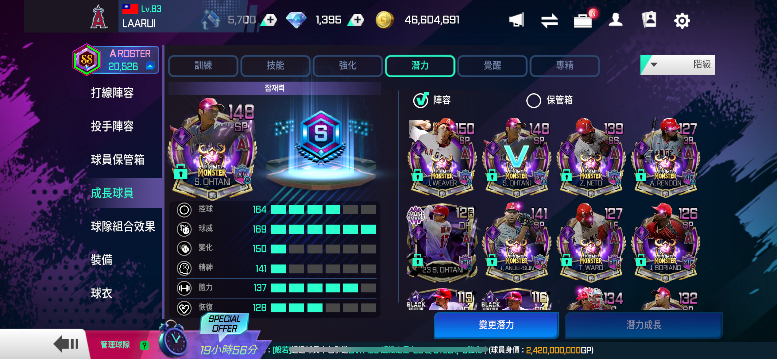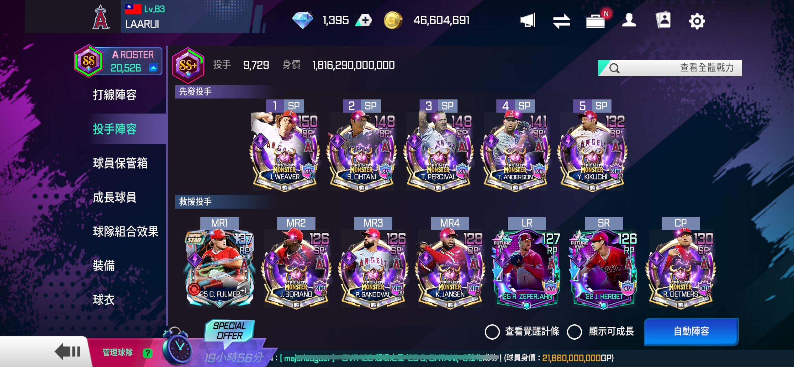 【83等】 洛杉磯天使 戰力20526