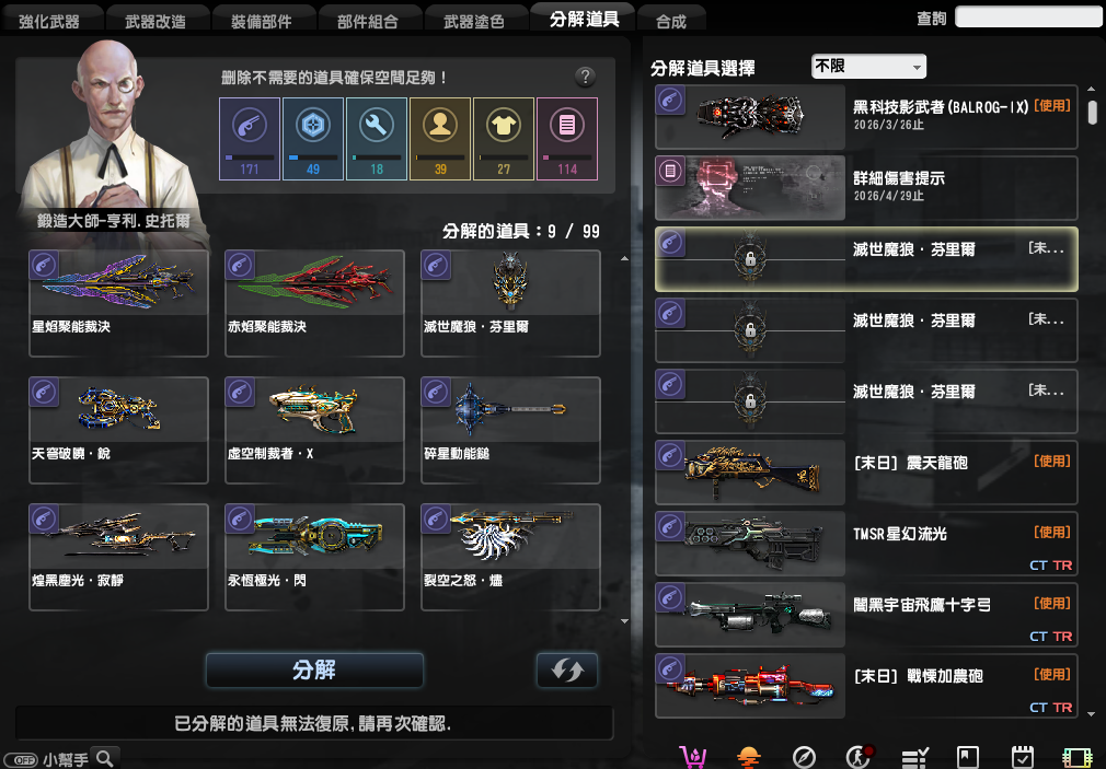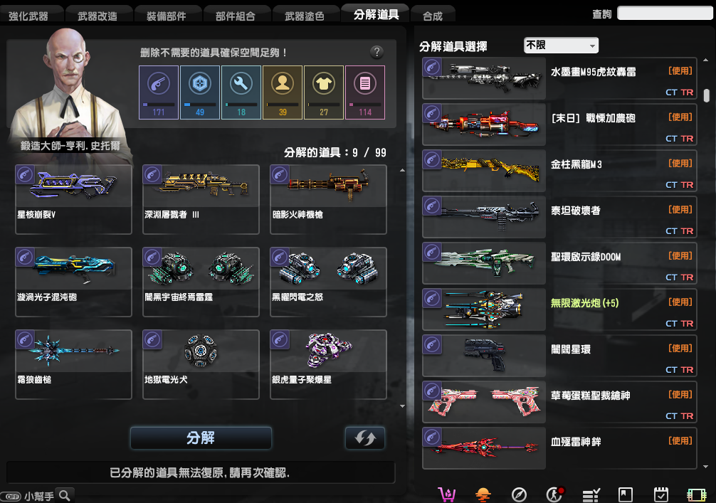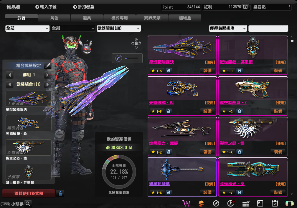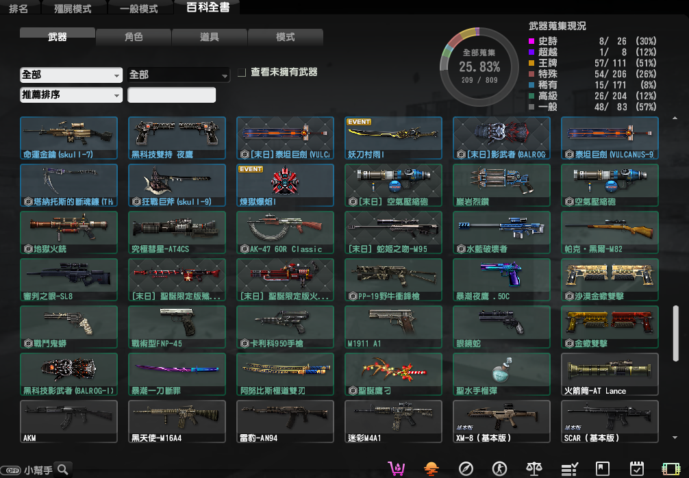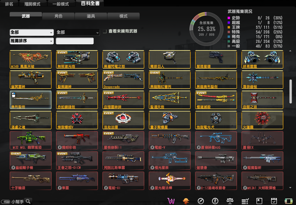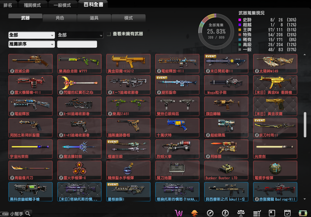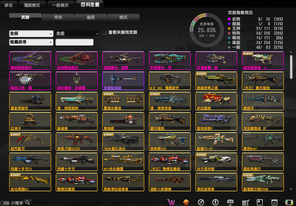 帳號 【7史詩武器、34王牌武器、18王牌角色】 全改,馬神、狼雷、天穹、白洞、裂空斧、兔神EX、虎神、碎星動能槌子、暗影火神