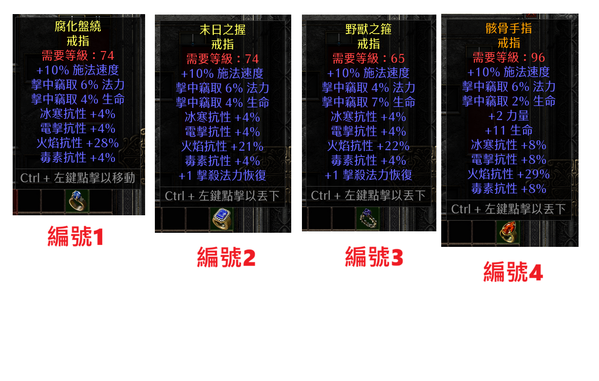 (售出)★戒指2:10%高施+4%偷血+頂6%偷法力+4全抗、爆火抗21%+1EK