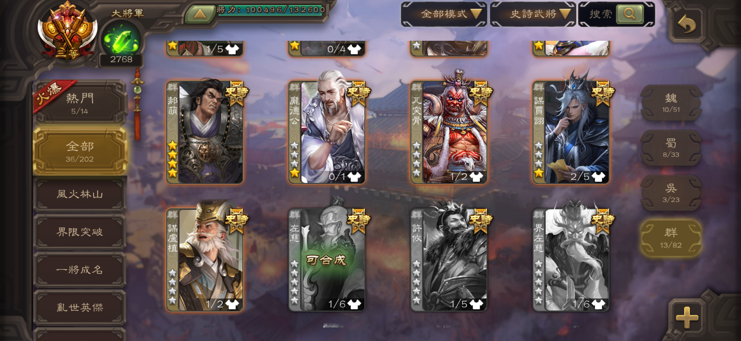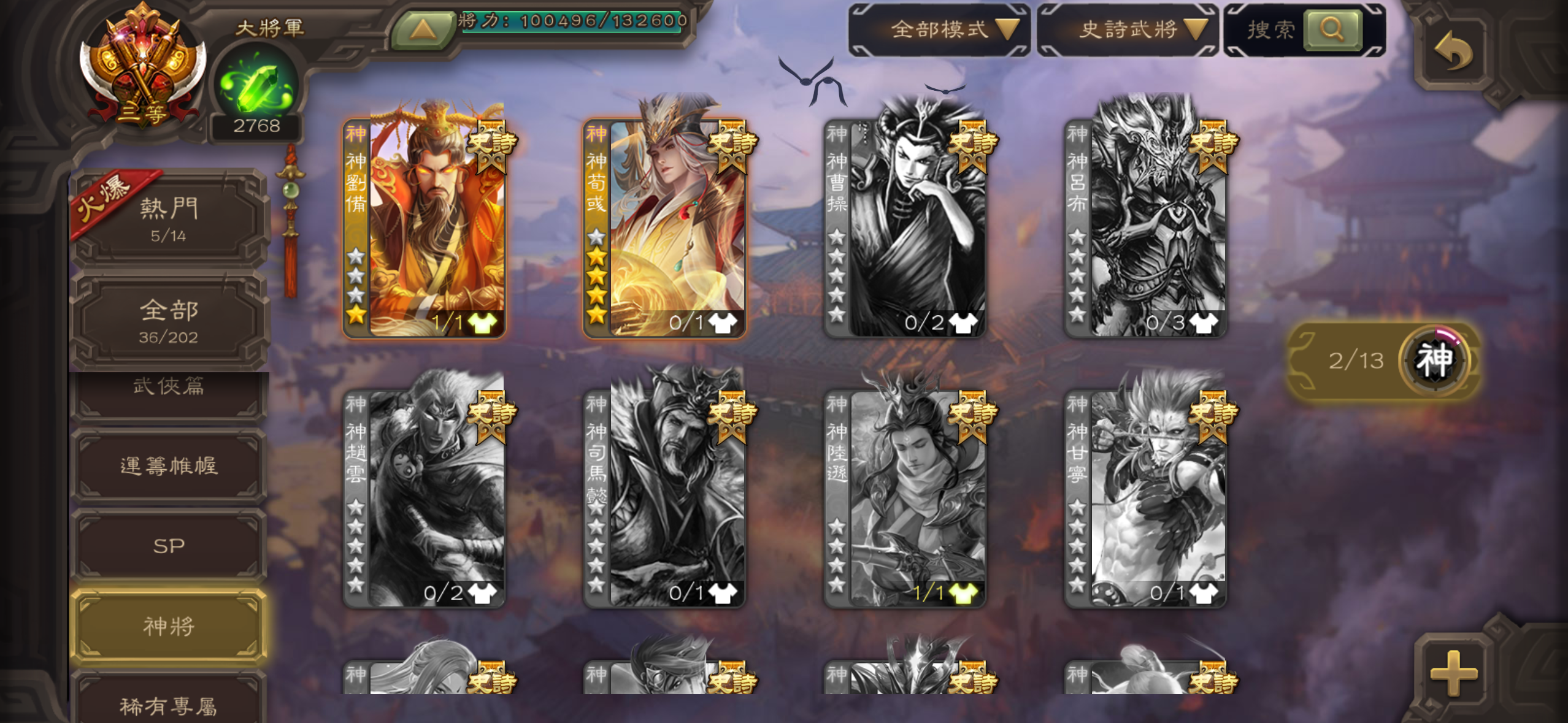 【156等】 幻諸葛果,幻司馬懿,神荀彧等35史詩角色 全部321角色,動態造型30個寶珠14