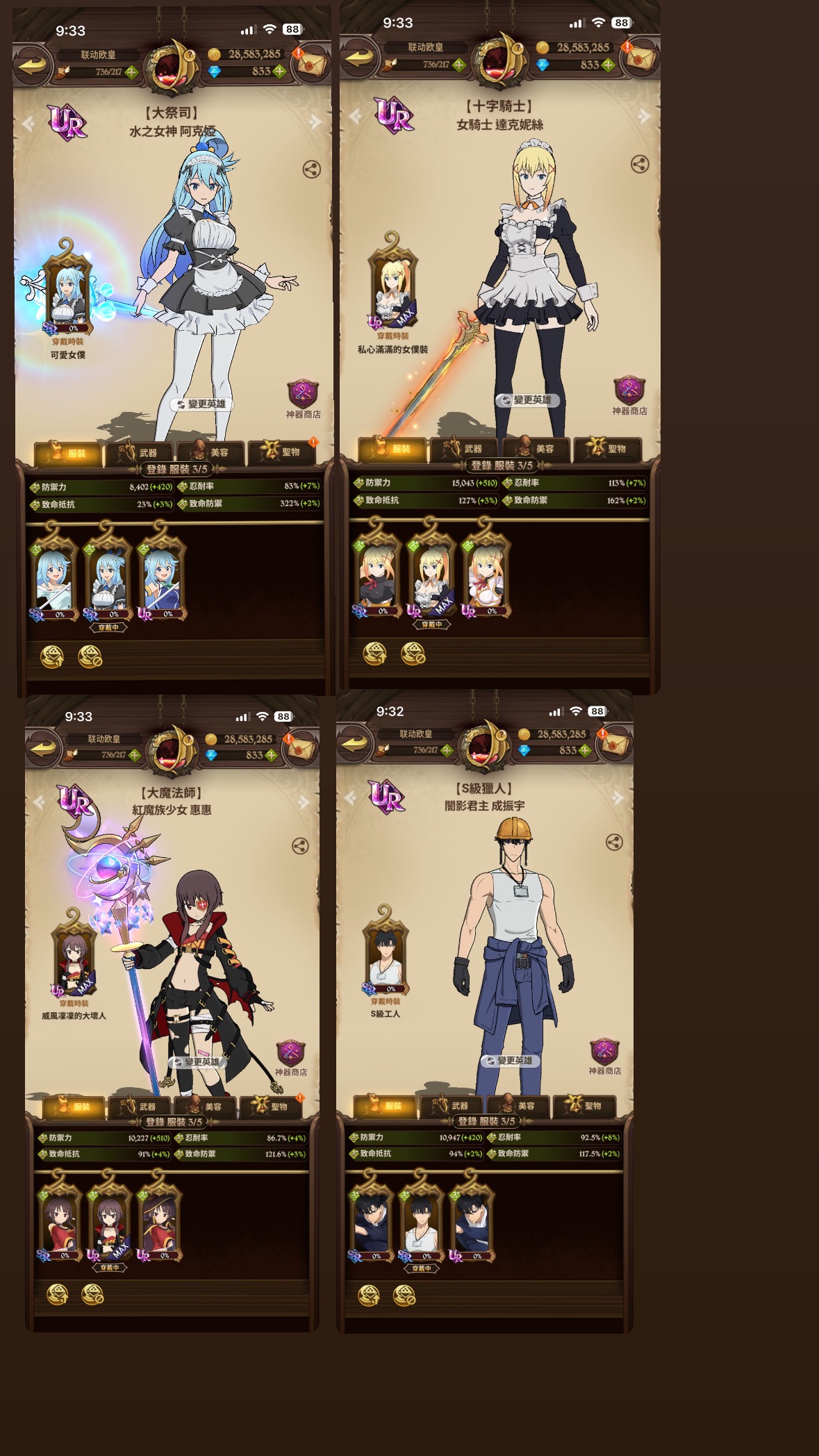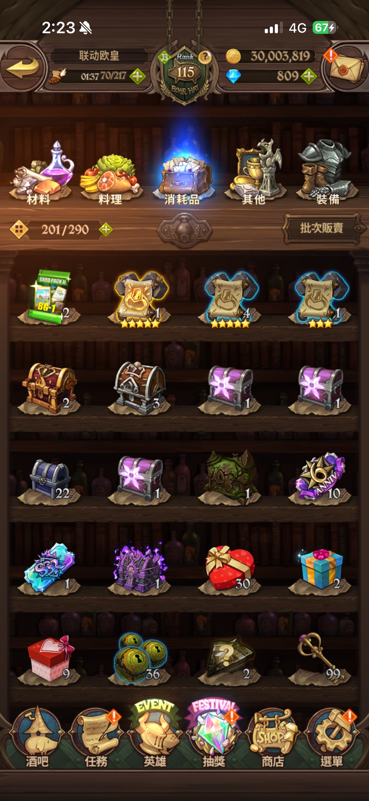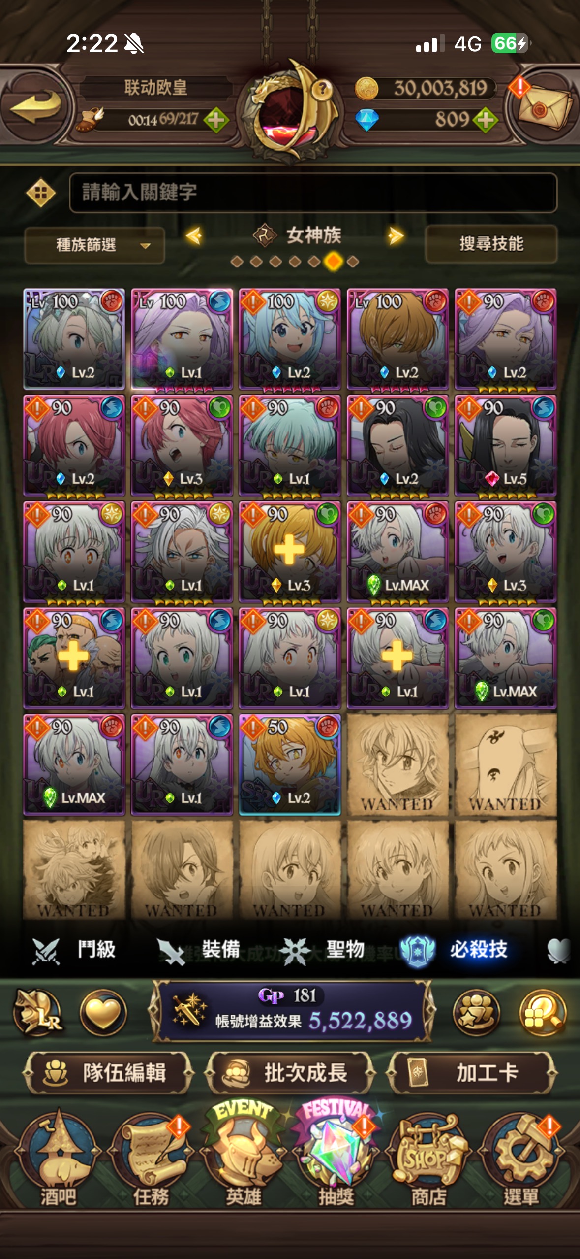 如上圖資源跟圖一樣,隊伍多樣使用有新不明女角幣三,有加新光金恩,合作皆有造型除了車海印沒,每週鑽領50鑽,在售出前遊玩中~需要可以詢問