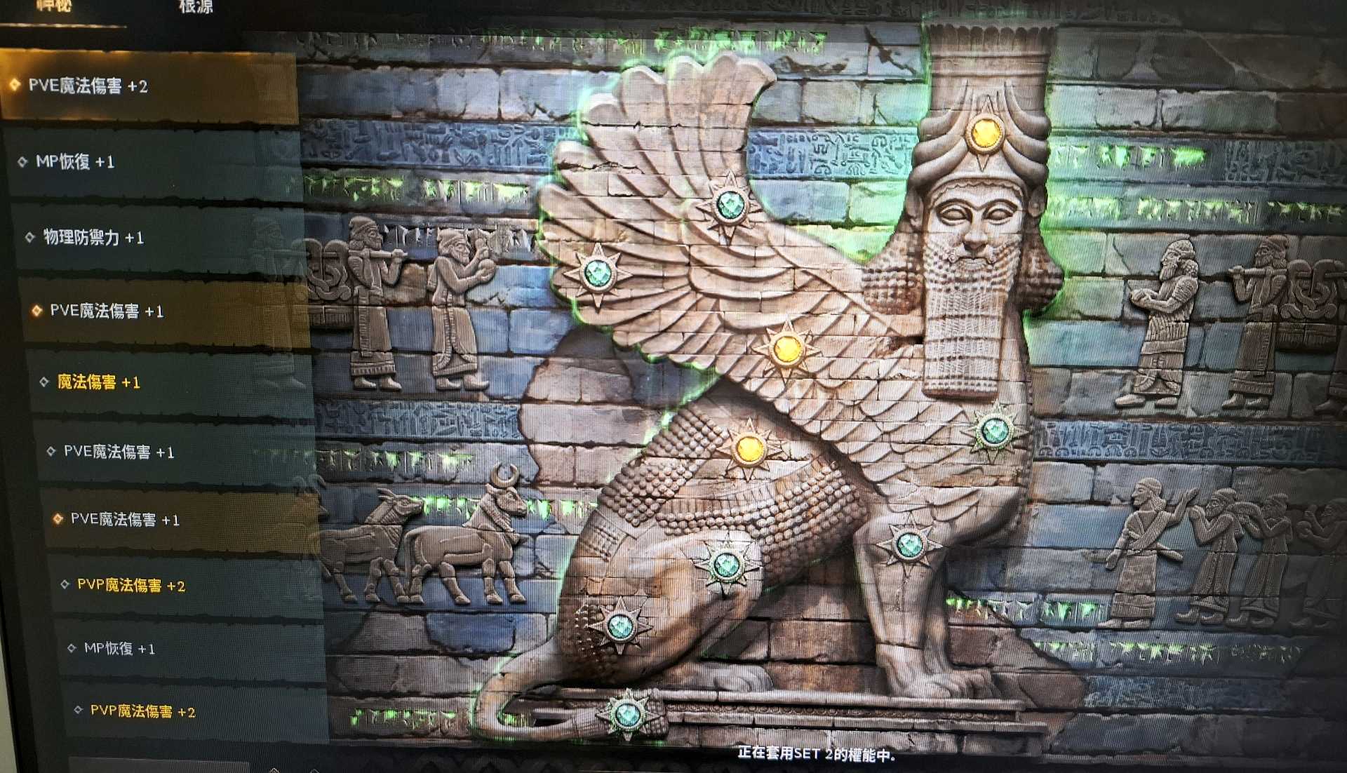 【刻印紫裝】:+9巫師魔杖、+5賽尼斯頭、+5祝賽尼斯袍、+5賽尼斯手、+5吸血鬼斗篷、+5幻象眼魔心眼、+5祝巴列斯脛甲