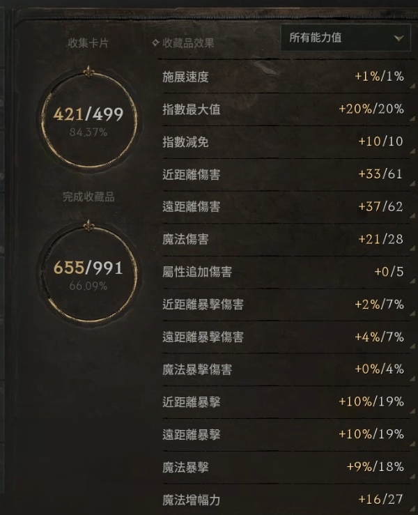 【變身收藏】: 收集卡片(84.37%)、完成收藏品(66.09%)
