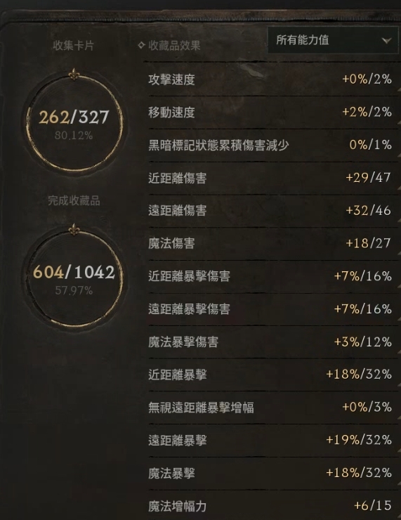 【娃娃收藏】: 收集卡片(80.12%)、完成收藏品(57.97%)